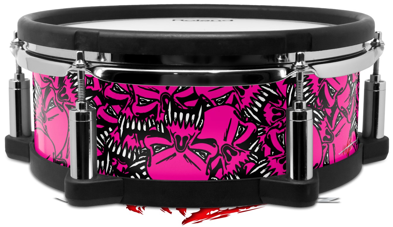 Skin Wrap works with Roland vDrum Shell PD-108 Drum Scattered Skulls Hot Pink (DRUM NOT INCLUDED)
