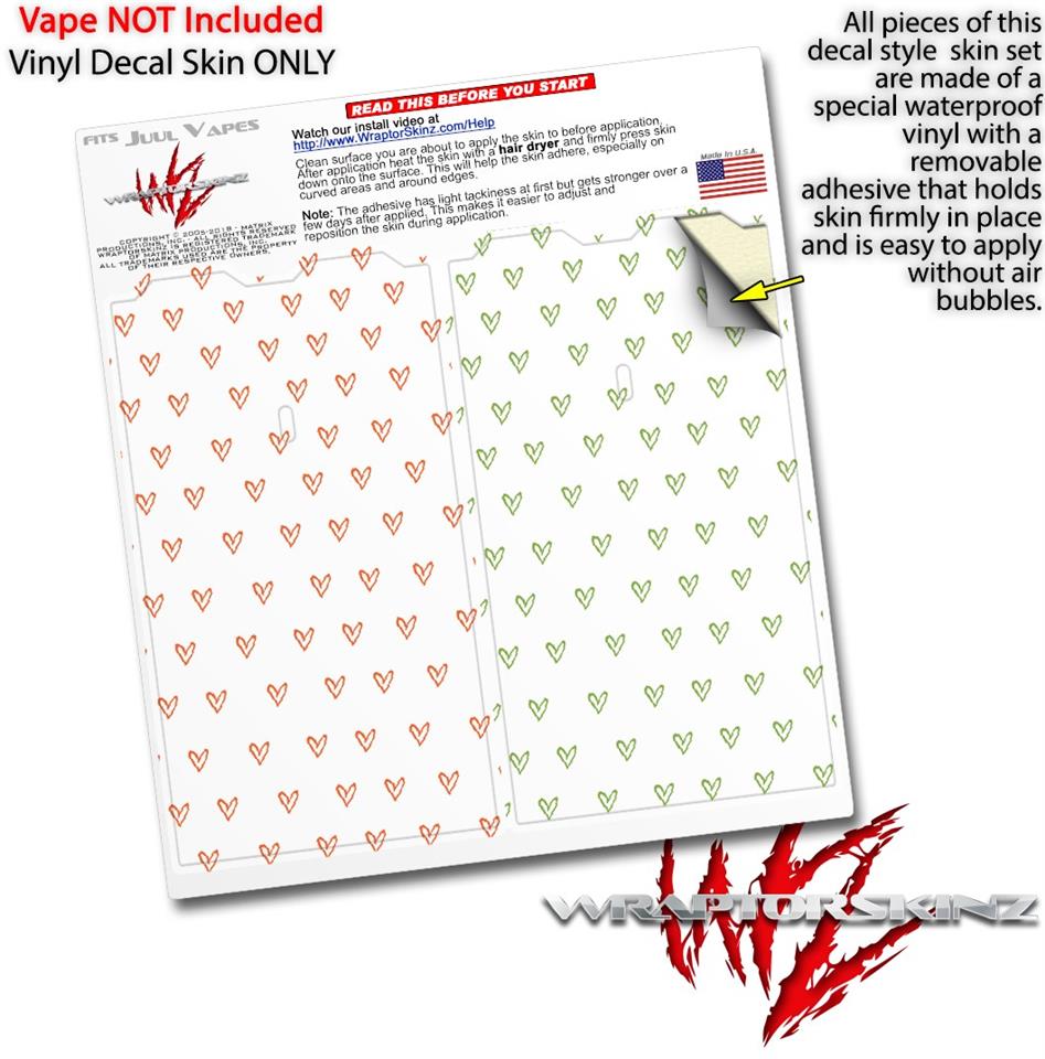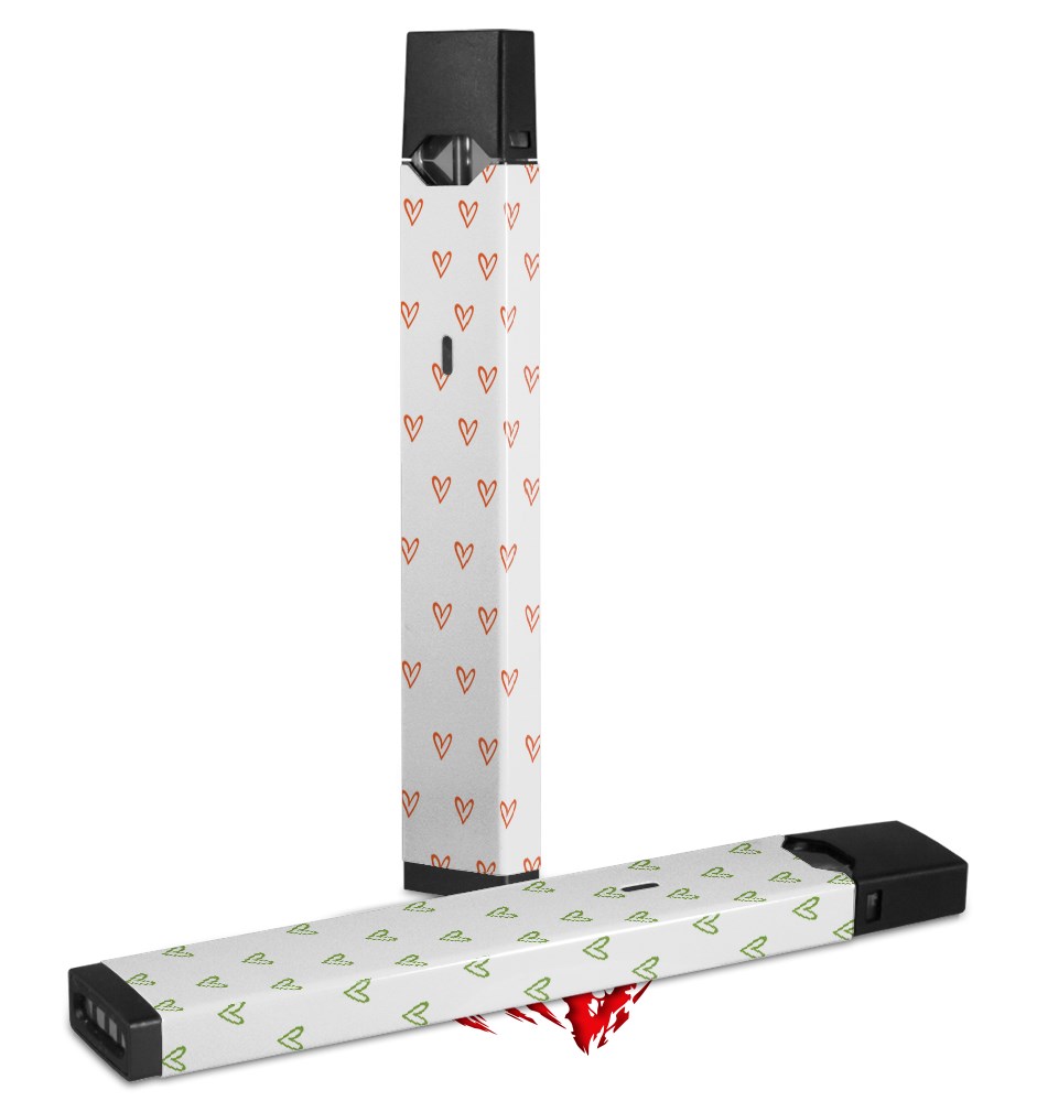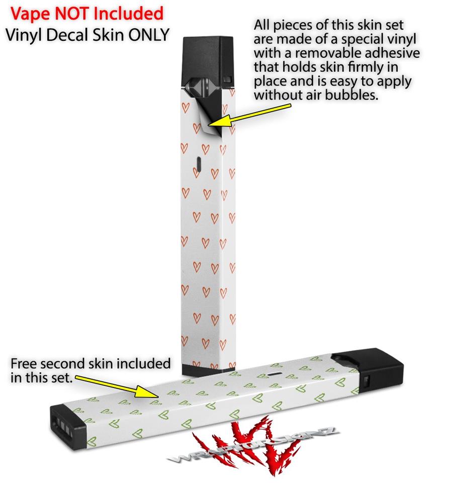 Skin Decal Wrap 2 Pack for Juul Vapes Hearts Orange JUUL NOT INCLUDED