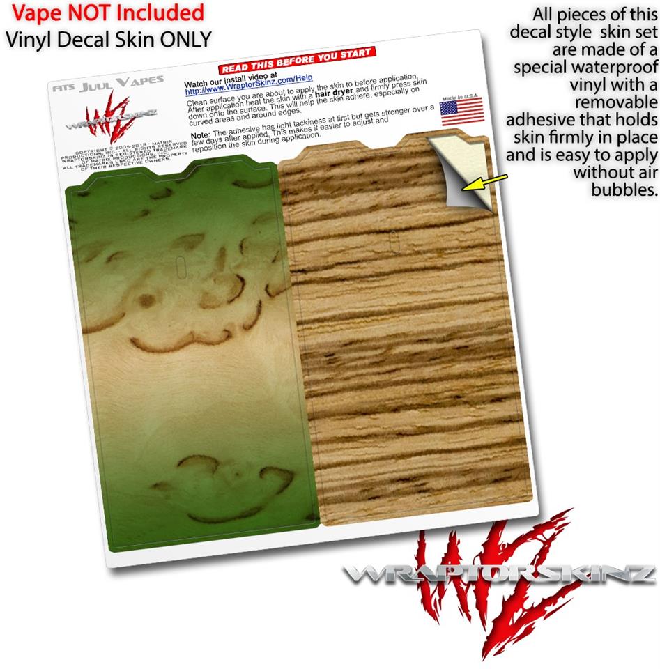 Skin Decal Wrap 2 Pack for Juul Vapes Exotic Wood Karelian Burl Burst Tropical Green JUUL NOT INCLUDED