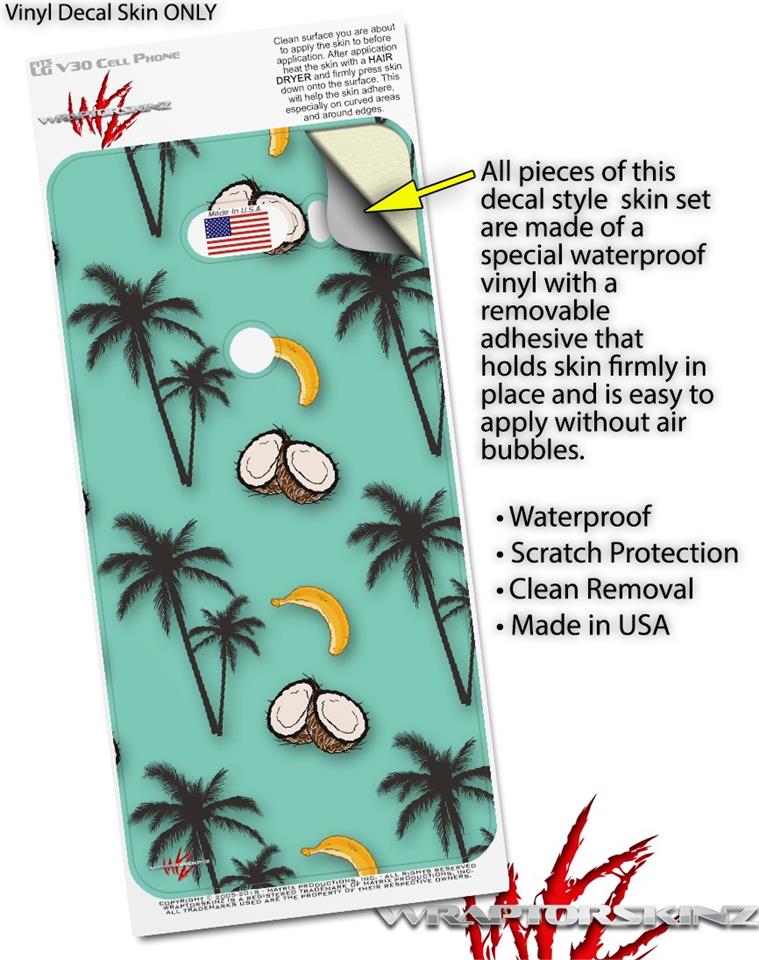 Skin Decal Wrap for LG V30 Coconuts Palm Trees and Bananas Seafoam Green