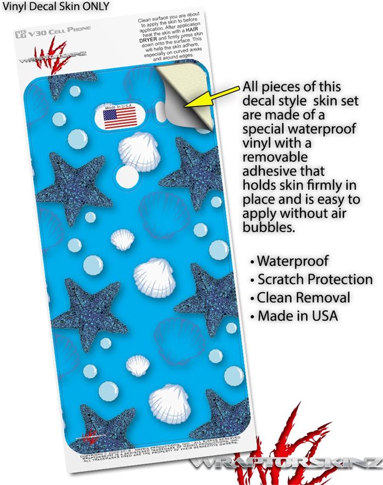 Skin Decal Wrap for LG V30 Starfish and Sea Shells Blue Medium