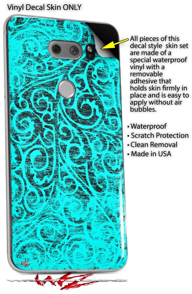 Skin Decal Wrap for LG V30 Folder Doodles Neon Teal
