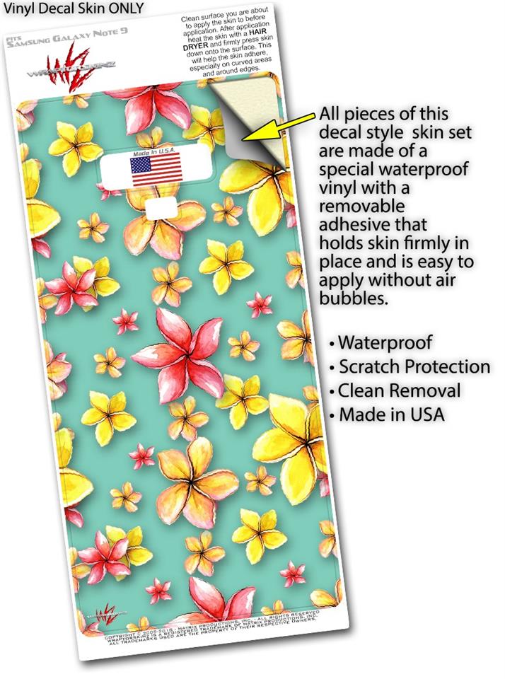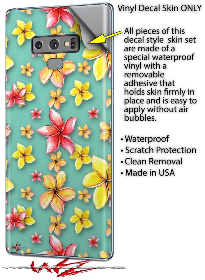 Decal style Skin Wrap compatible with Samsung Galaxy Note 9 Beach Flowers Seafoam Green