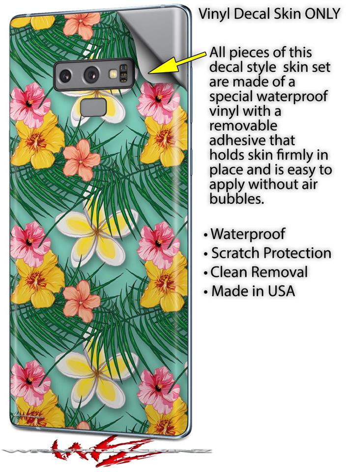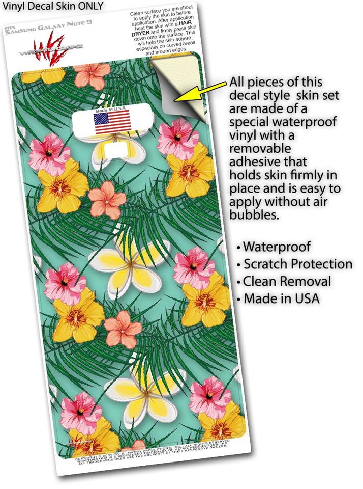 Decal style Skin Wrap compatible with Samsung Galaxy Note 9 Beach Flowers 02 Seafoam Green
