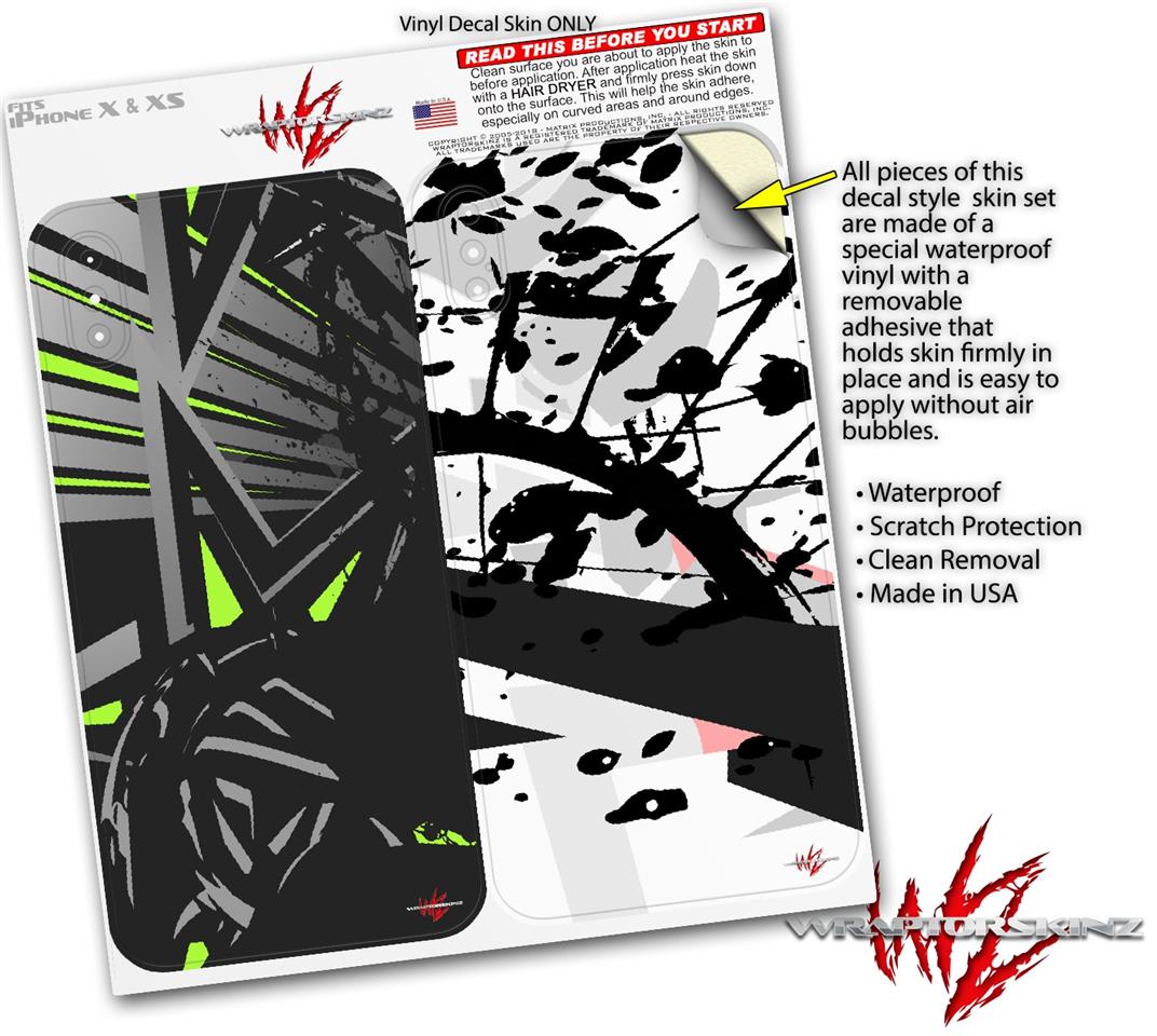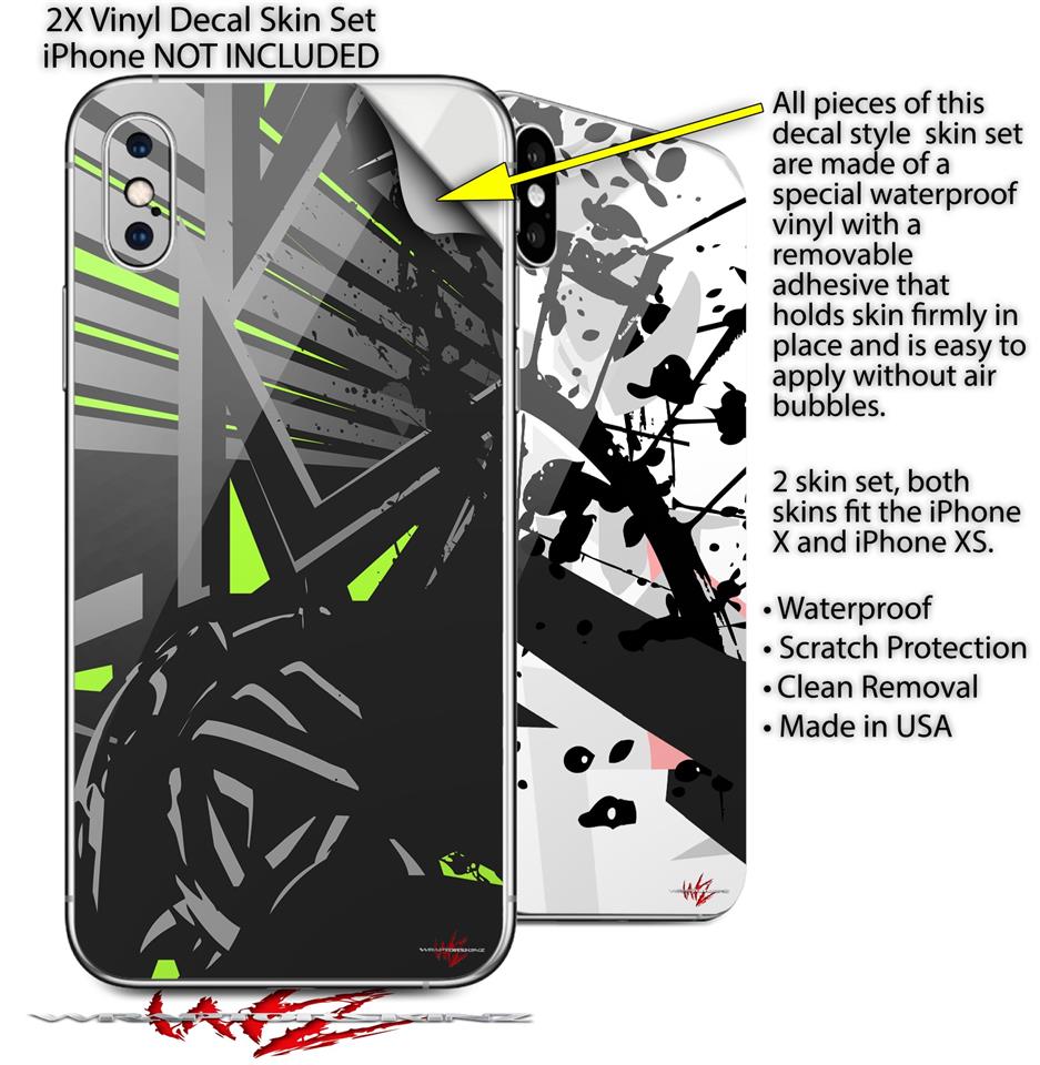 2 Decal style Skin Wraps set for Apple iPhone X and XS Baja 0023 Lime Green