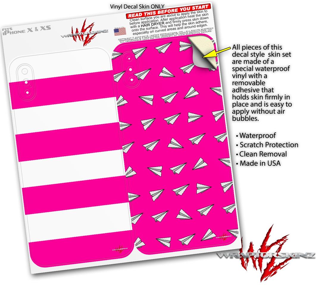 2 Decal style Skin Wraps set for Apple iPhone X and XS Psycho Stripes Hot Pink and White