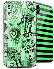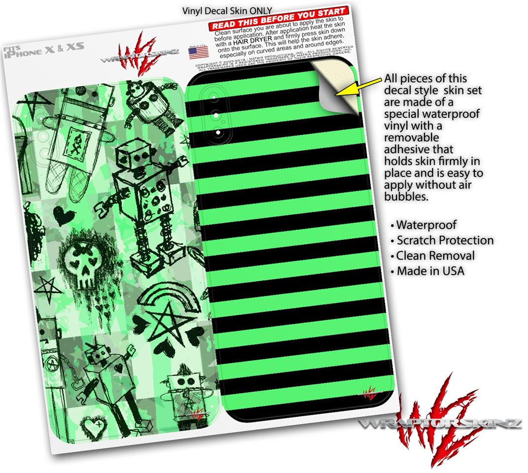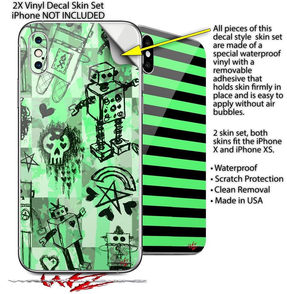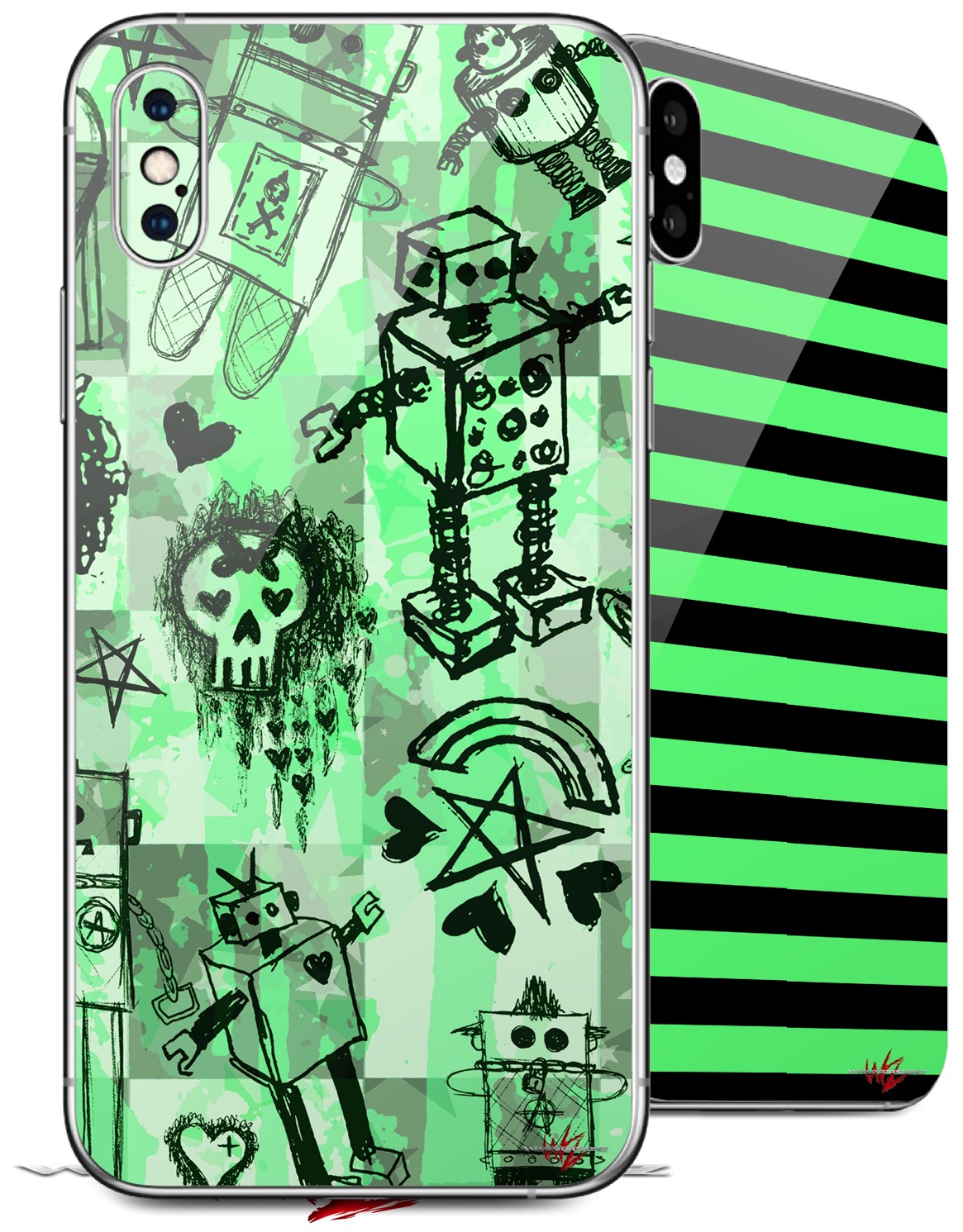 2 Decal style Skin Wraps set for Apple iPhone X and XS Scene Kid Sketches Green