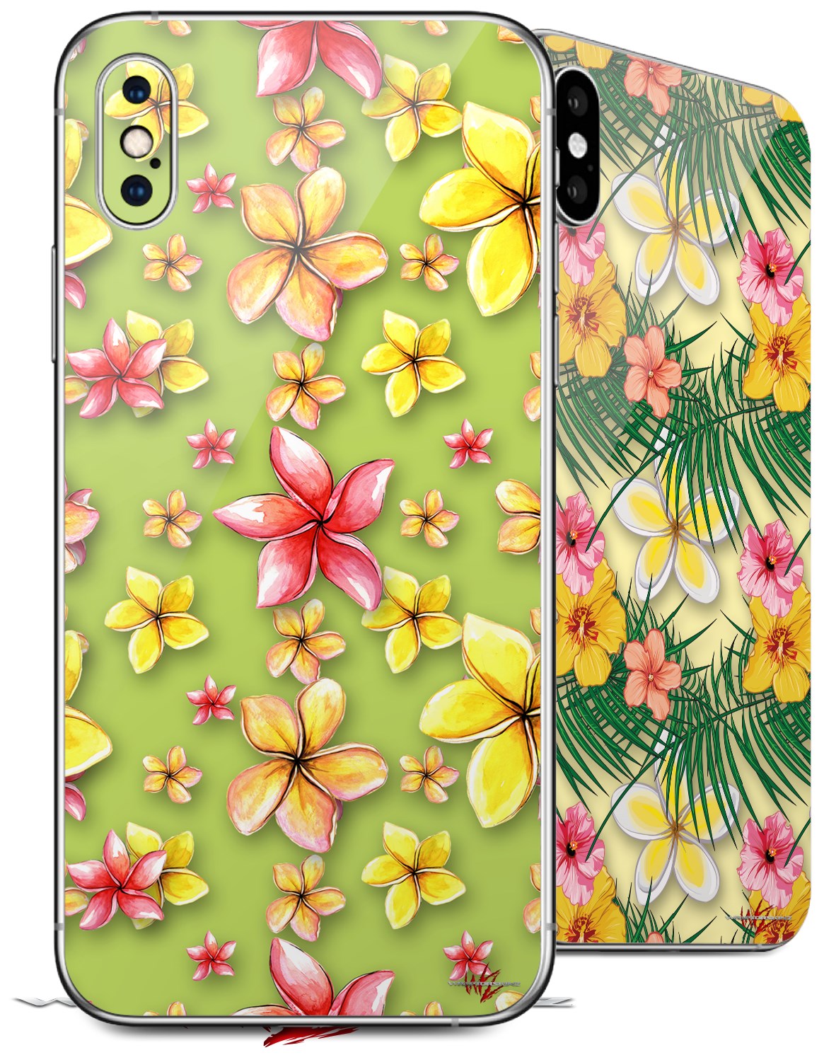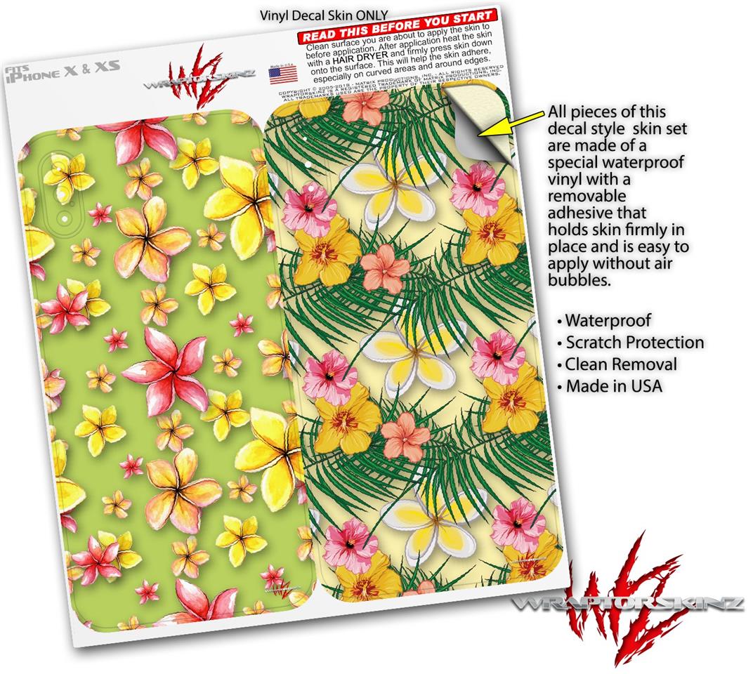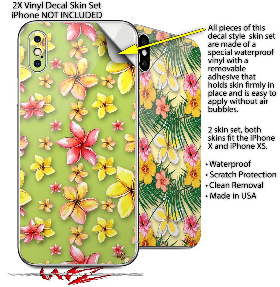 2 Decal style Skin Wraps set for Apple iPhone X and XS Beach Flowers Sage Green