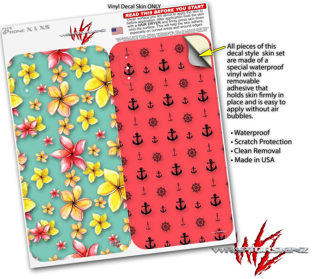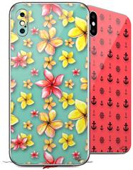2 Decal style Skin Wraps set for Apple iPhone X and XS Beach Flowers Seafoam Green