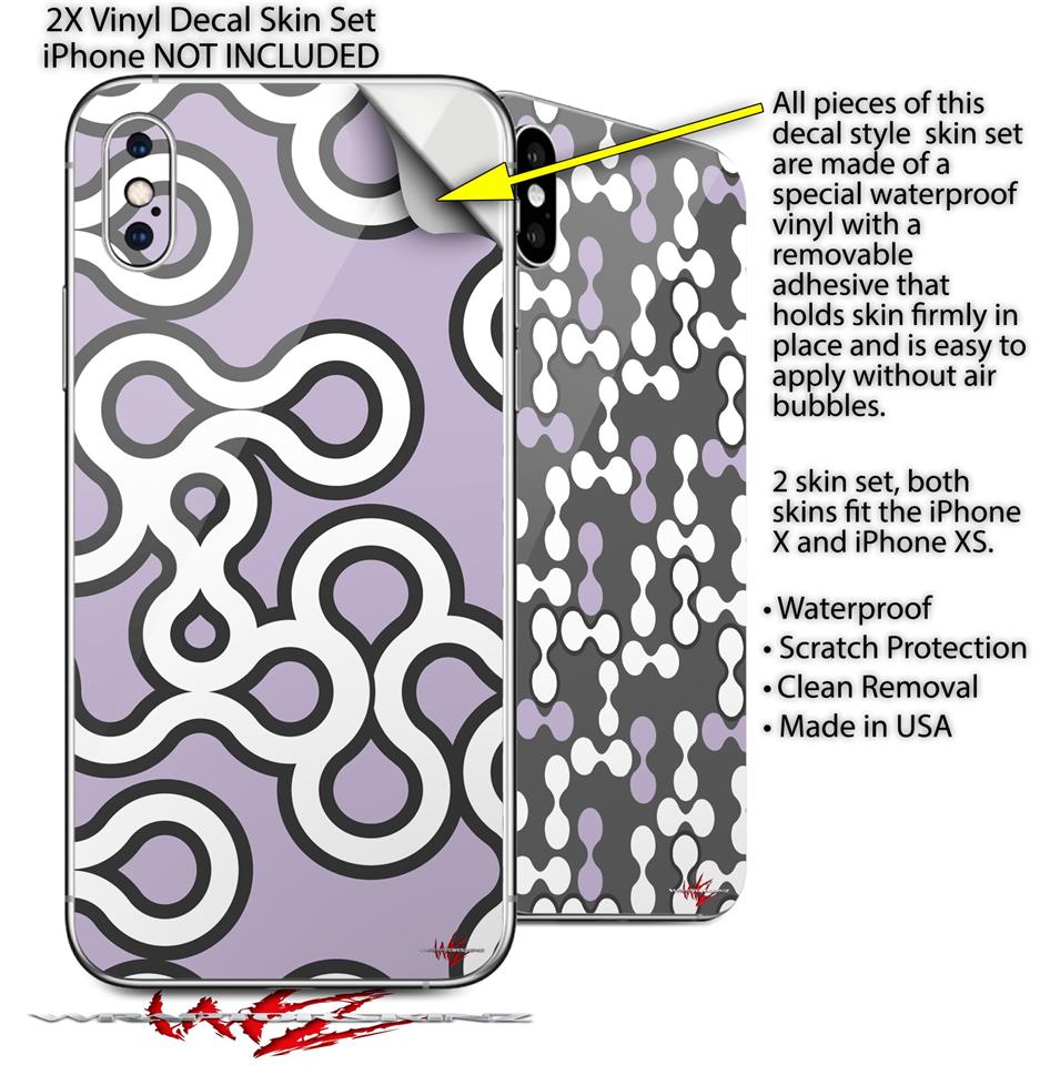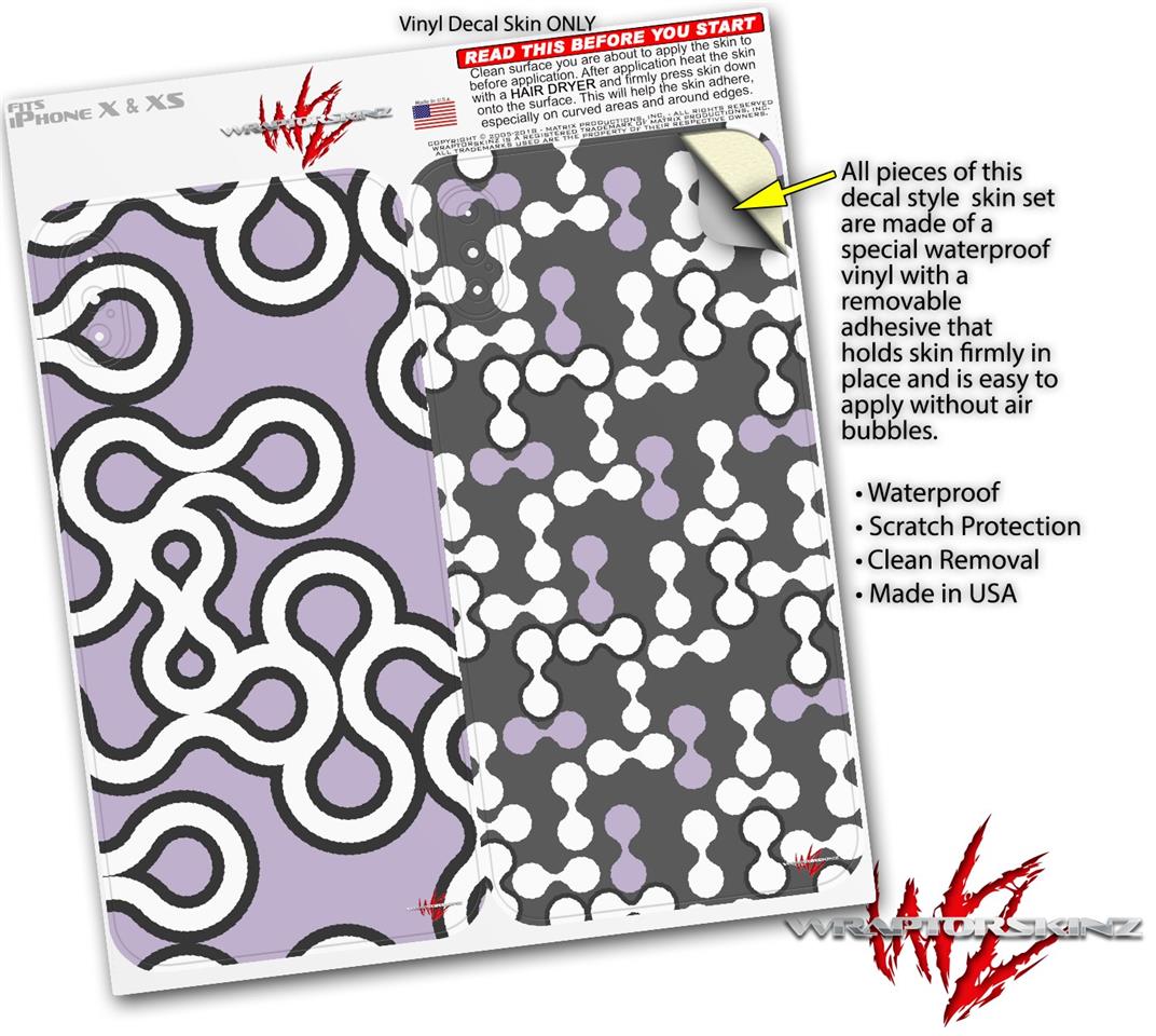 2 Decal style Skin Wraps set for Apple iPhone X and XS Locknodes 03 Lavender