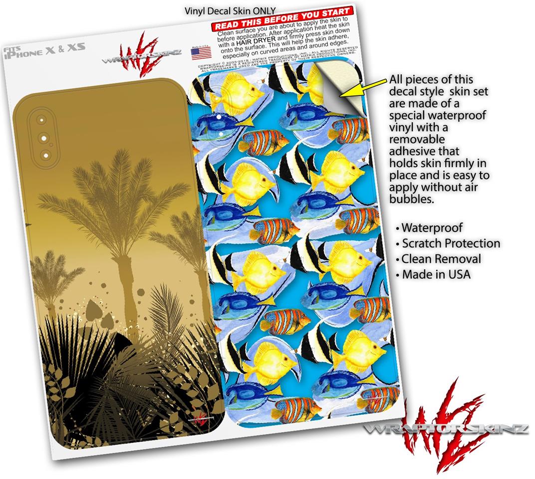 2 Decal style Skin Wraps set for Apple iPhone X and XS Summer Palm Trees