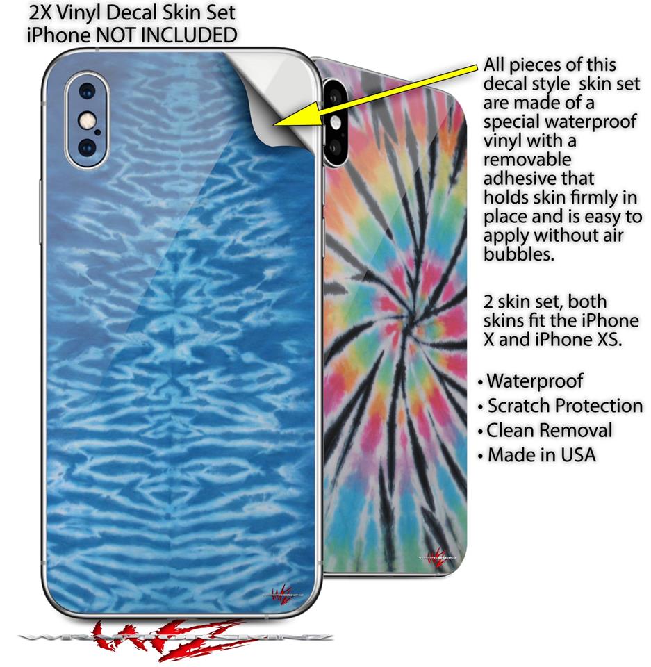 2 Decal style Skin Wraps set for Apple iPhone X and XS Tie Dye Spine 103