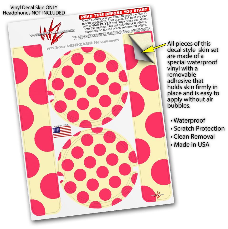 Decal style Skin Wrap for Sony MDR ZX110 Headphones Kearas Polka Dots Pink On Cream (HEADPHONES NOT INCLUDED)