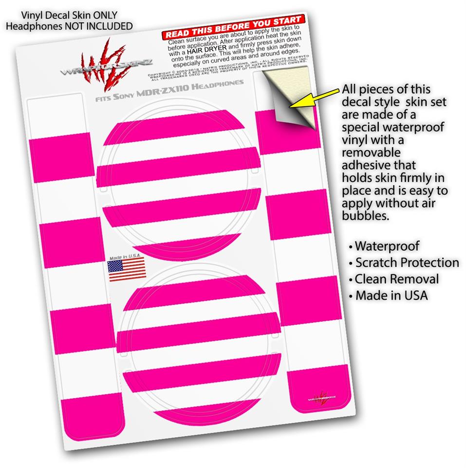 Decal style Skin Wrap for Sony MDR ZX110 Headphones Psycho Stripes Hot Pink and White (HEADPHONES NOT INCLUDED)