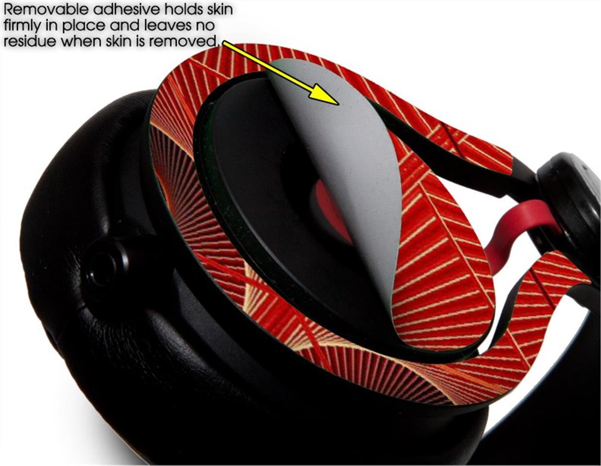 • Decal style skin covers headphone band and ear pieces