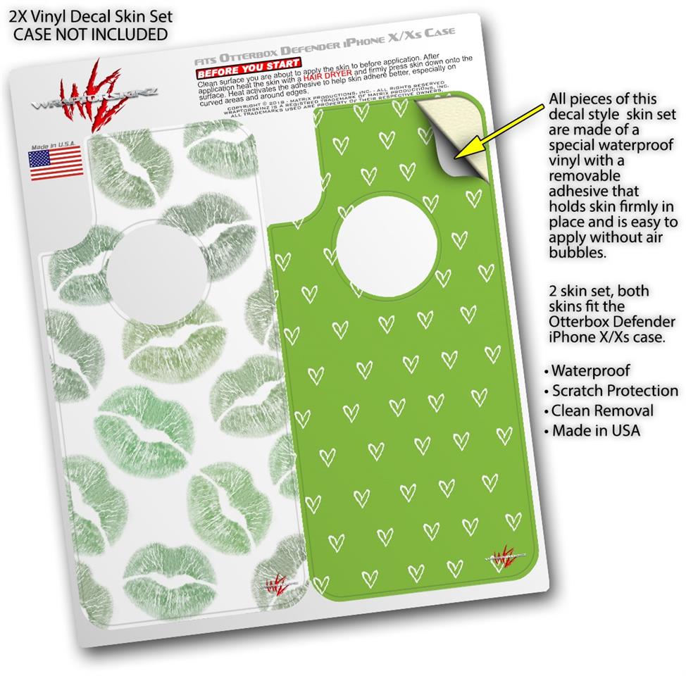 2x Decal style Skin Wrap Set compatible with Otterbox Defender iPhone X and Xs Case - Green Lips (CASE NOT INCLUDED)