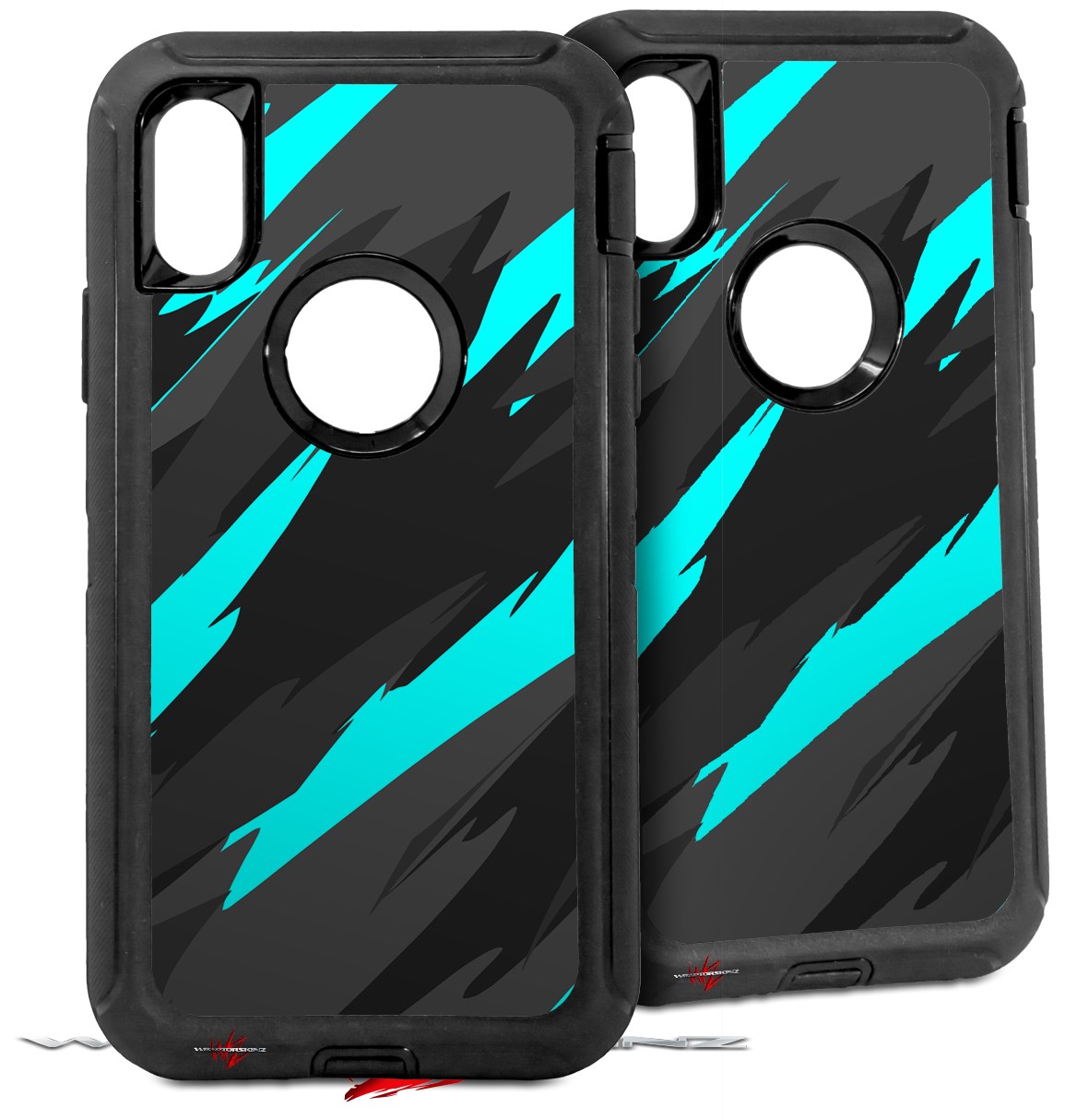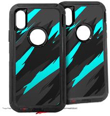 2x Decal style Skin Wrap Set compatible with Otterbox Defender iPhone X and Xs Case - Jagged Camo Neon Teal (CASE NOT INCLUDED)