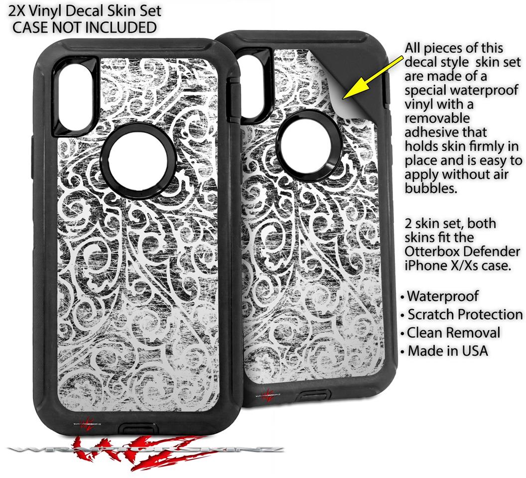 2x Decal style Skin Wrap Set compatible with Otterbox Defender iPhone X and Xs Case - Folder Doodles White (CASE NOT INCLUDED)
