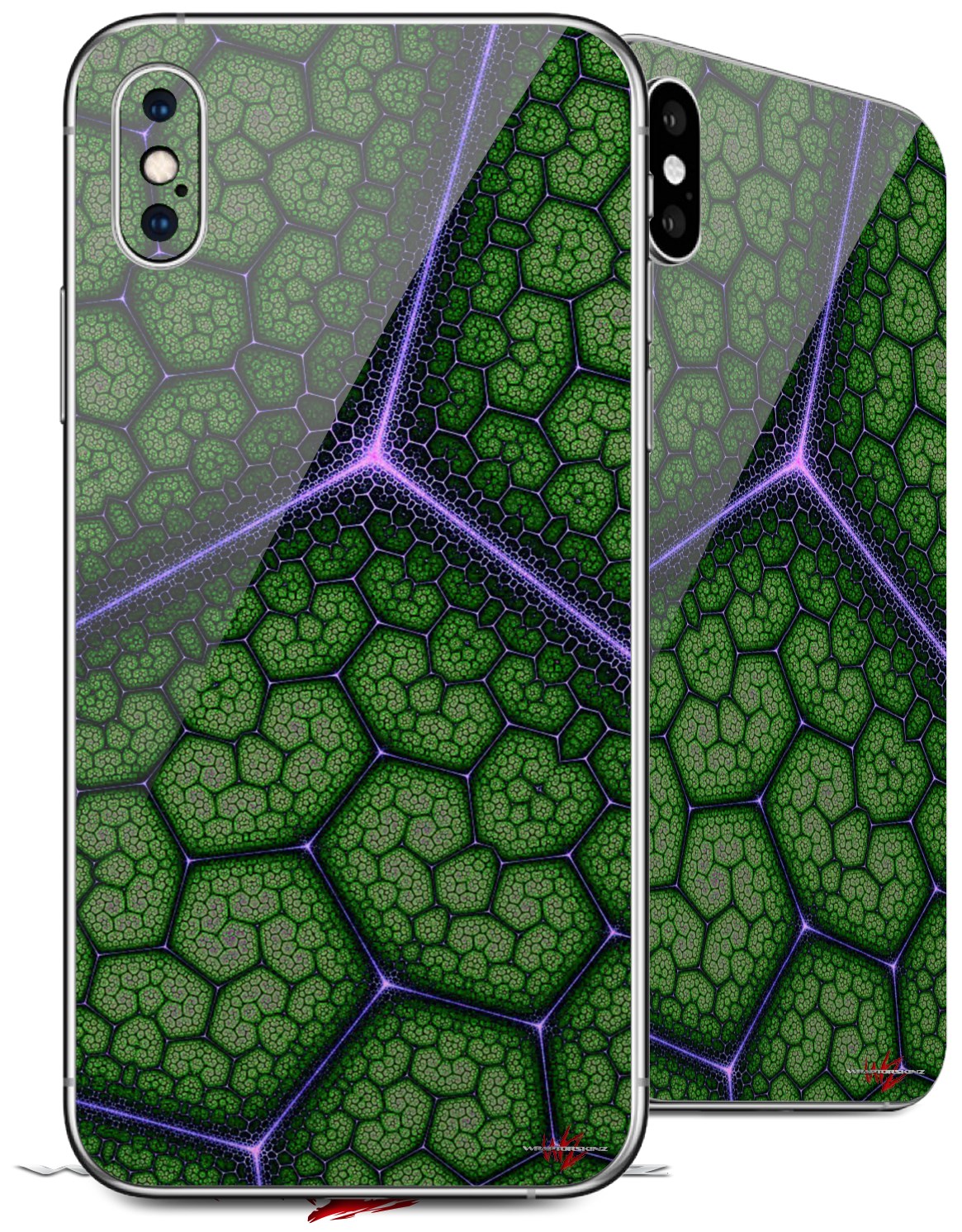 2 Decal style Skin Wraps set compatible with Apple iPhone X and XS Linear Cosmos Green
