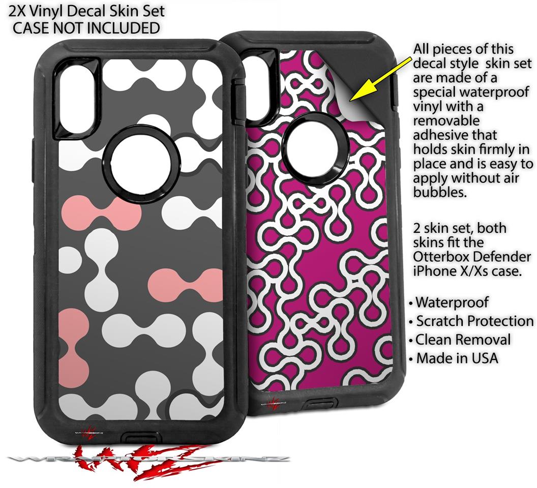 2x Decal style Skin Wrap Set compatible with Otterbox Defender iPhone X and Xs Case - Locknodes 04 Pink (CASE NOT INCLUDED)