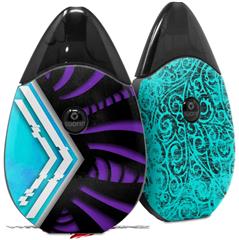 Skin Decal Wrap 2 Pack compatible with Suorin Drop Black Waves Neon Teal Purple VAPE NOT INCLUDED