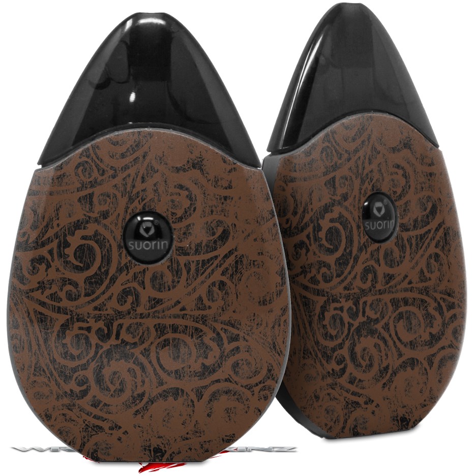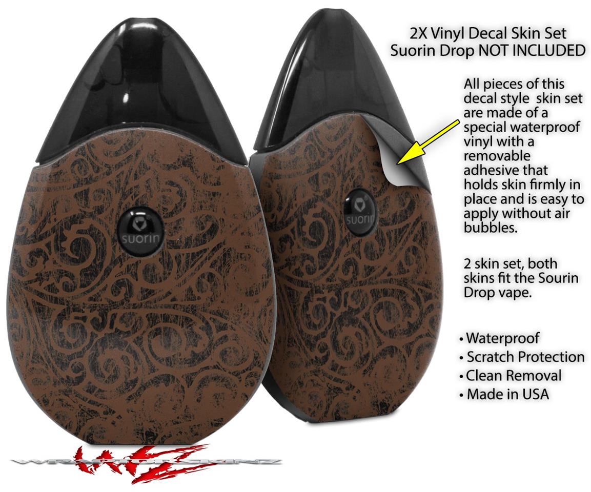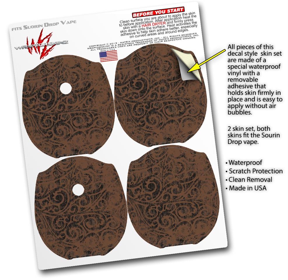 Skin Decal Wrap 2 Pack compatible with Suorin Drop Folder Doodles Chocolate Brown VAPE NOT INCLUDED