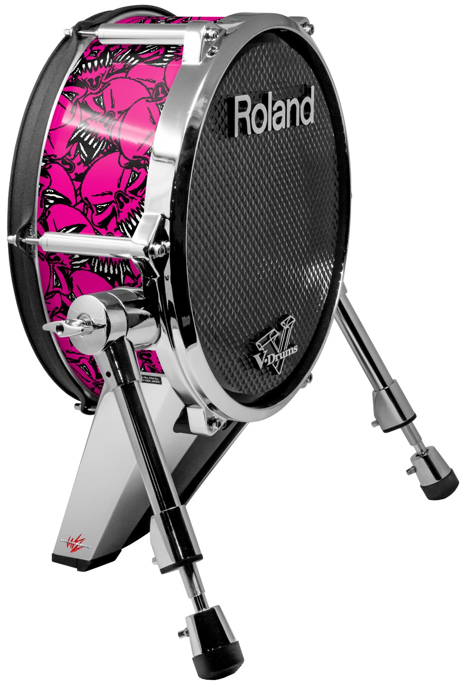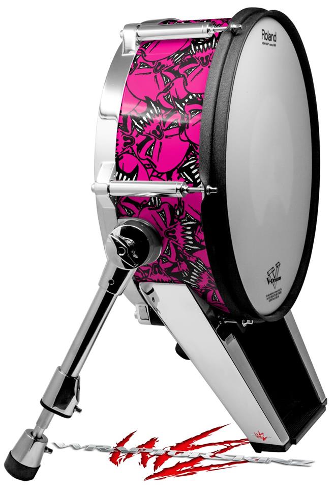 Skin Wrap works with Roland vDrum Shell KD-140 Kick Bass Drum Scattered Skulls Hot Pink (DRUM NOT INCLUDED)