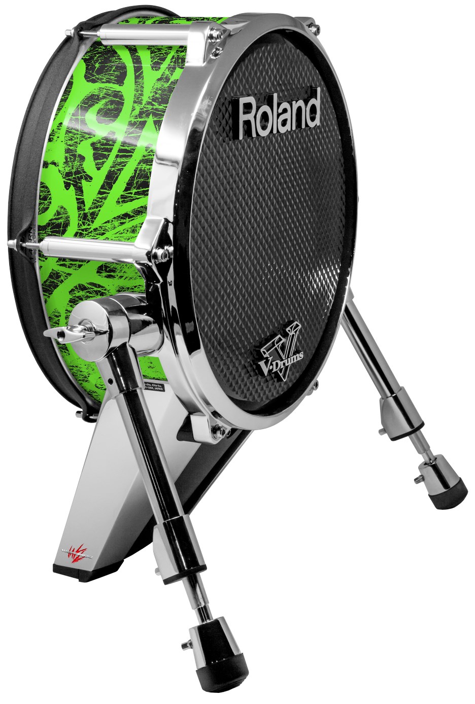 Skin Wrap works with Roland vDrum Shell KD-140 Kick Bass Drum Folder Doodles Neon Green (DRUM NOT INCLUDED)