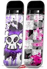Skin Decal Wrap 2 Pack for Smok Novo v1 Cartoon Skull Purple VAPE NOT INCLUDED