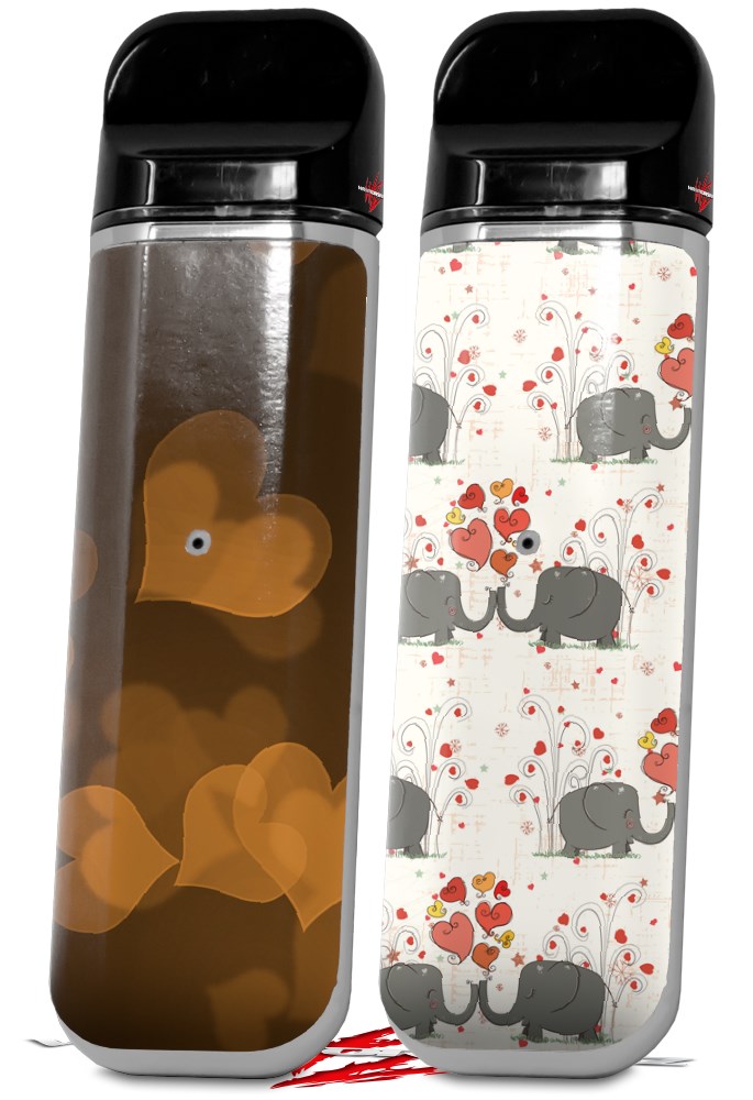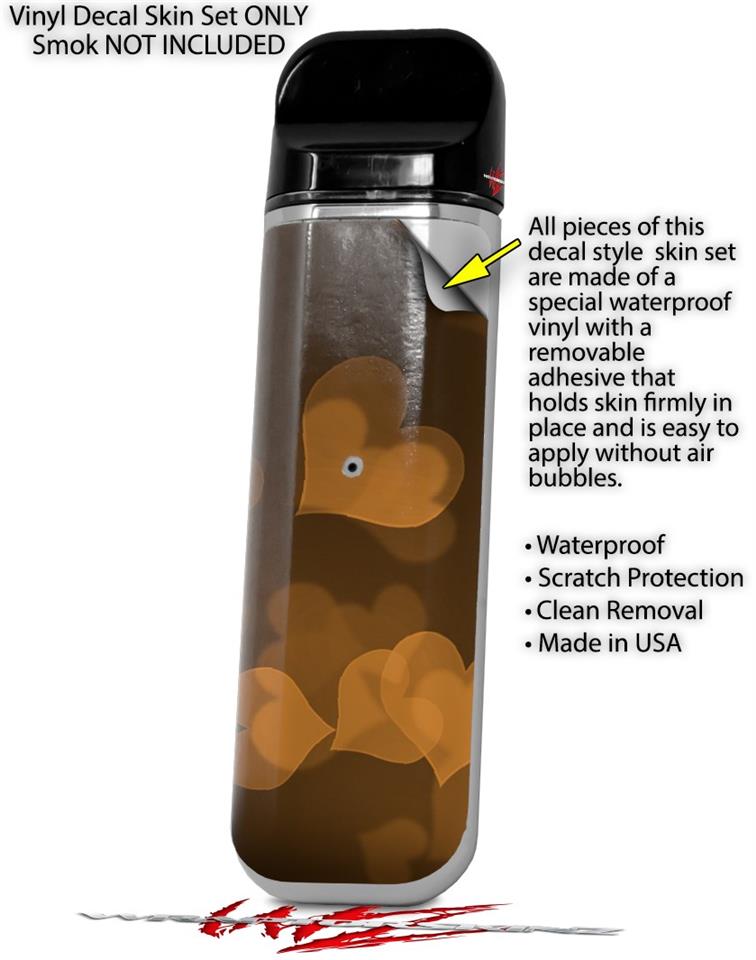 Skin Decal Wrap 2 Pack for Smok Novo v1 Bokeh Hearts Orange VAPE NOT INCLUDED