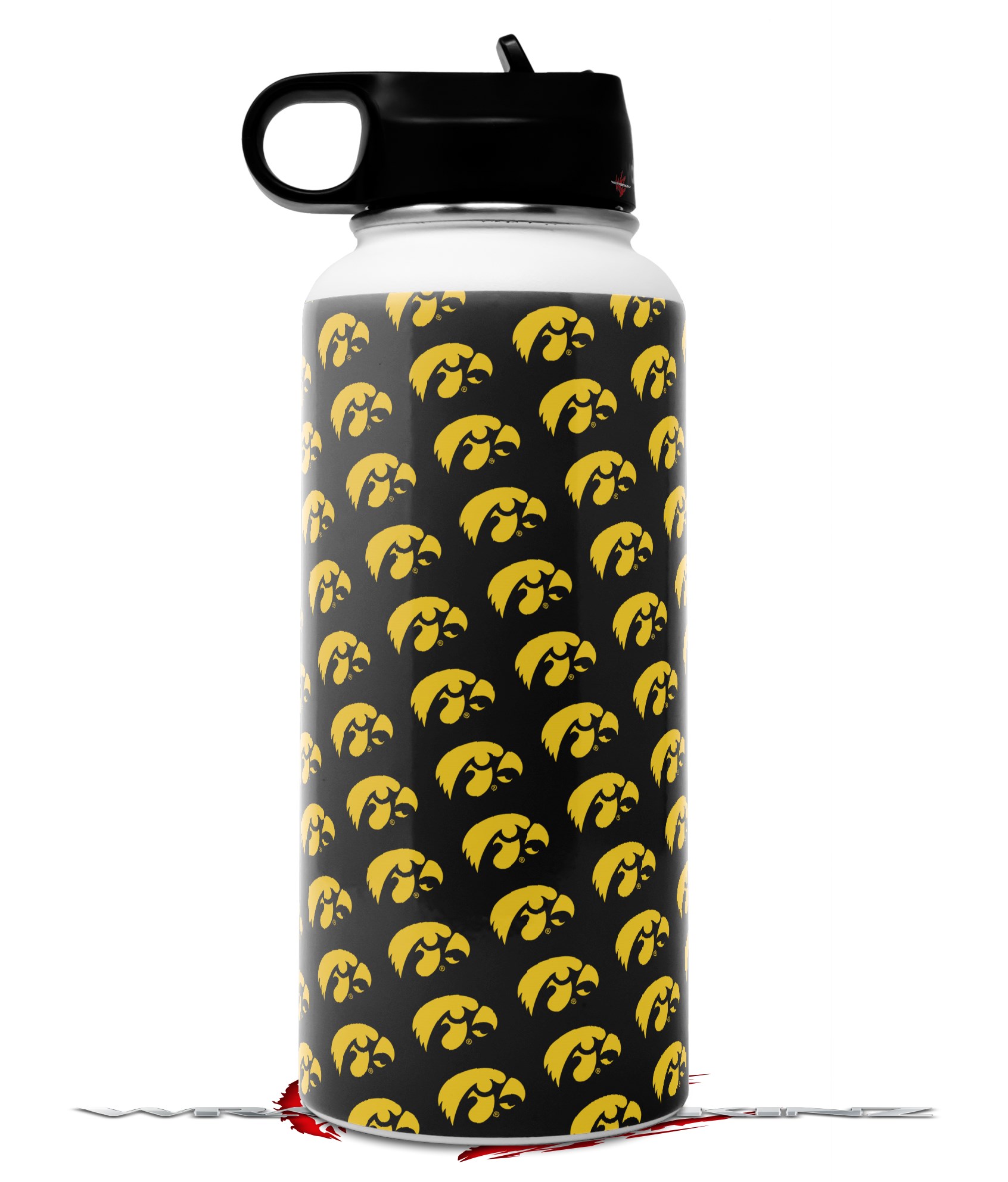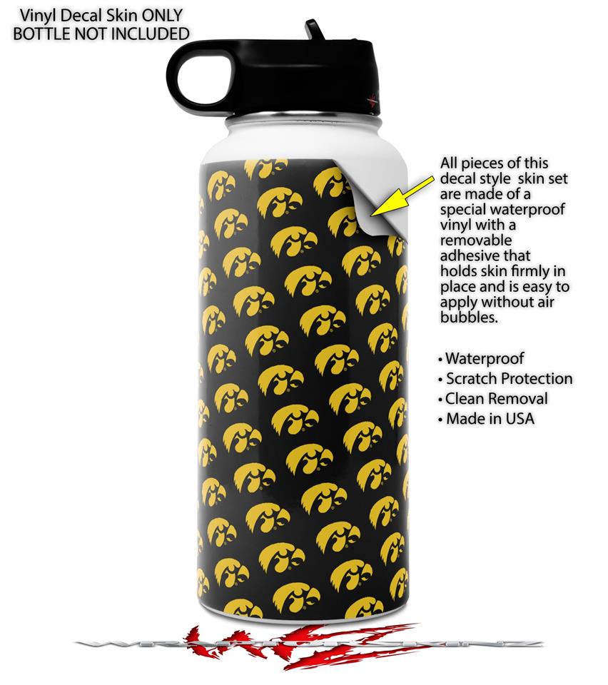 Skin Wrap Decal compatible with Hydro Flask Wide Mouth Bottle 32oz Iowa Hawkeyes Tigerhawk Tiled 06 Gold on Black (BOTTLE NOT INCLUDED)