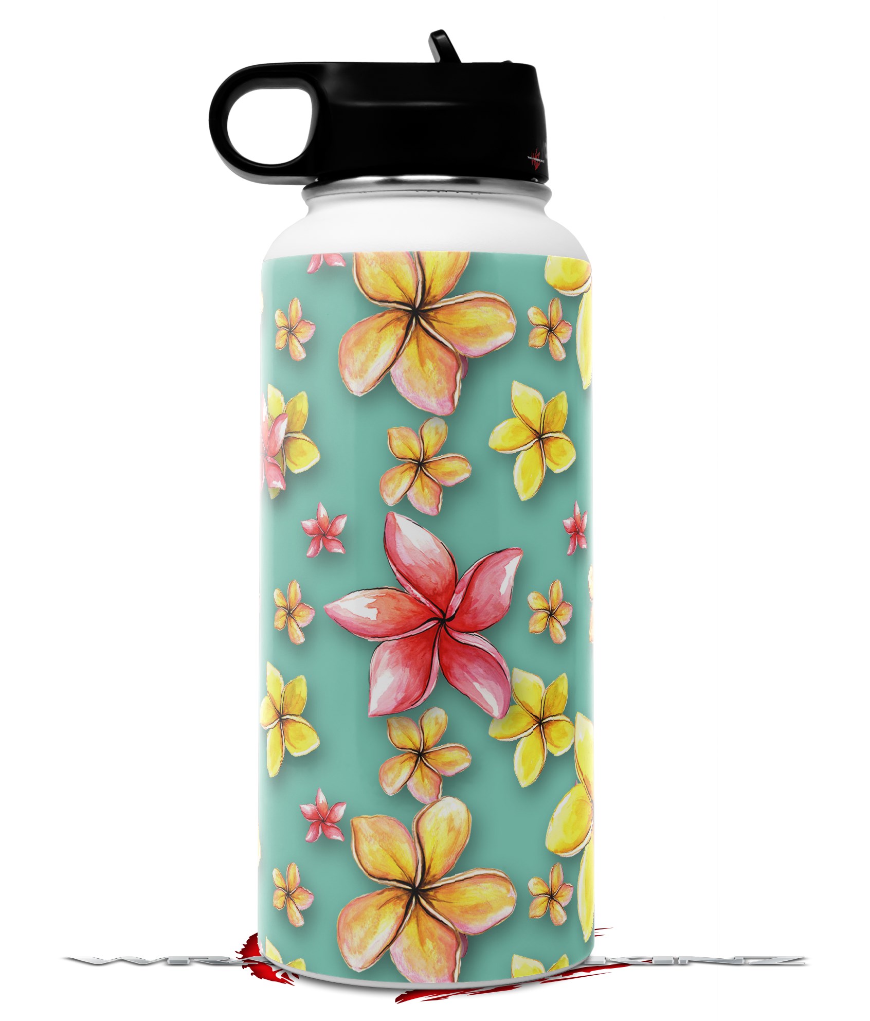 Skin Wrap Decal compatible with Hydro Flask Wide Mouth Bottle 32oz Beach Flowers Seafoam Green (BOTTLE NOT INCLUDED)