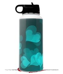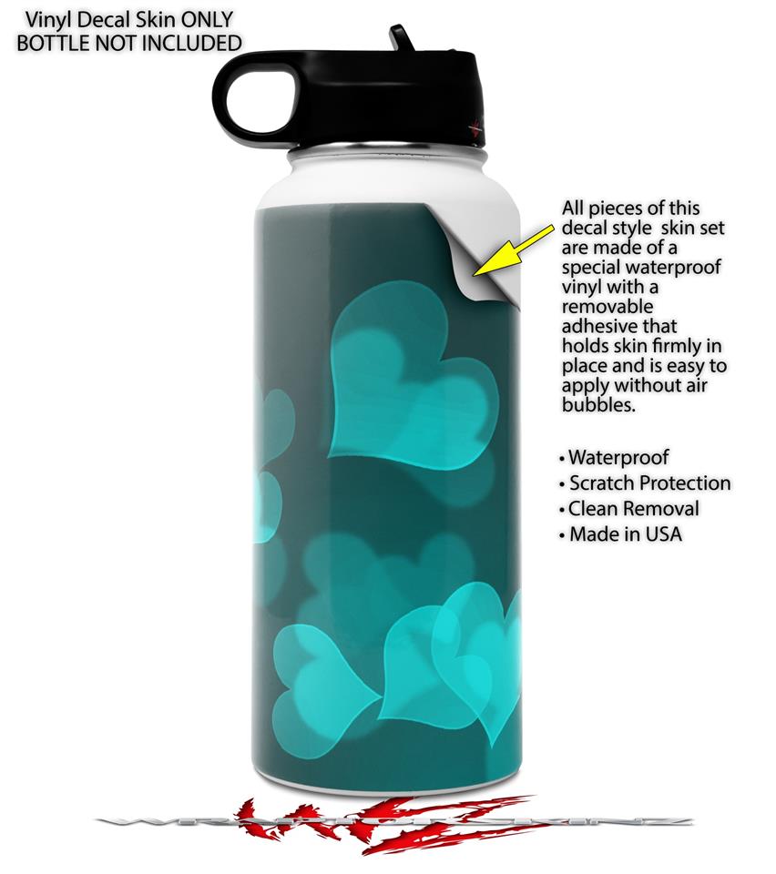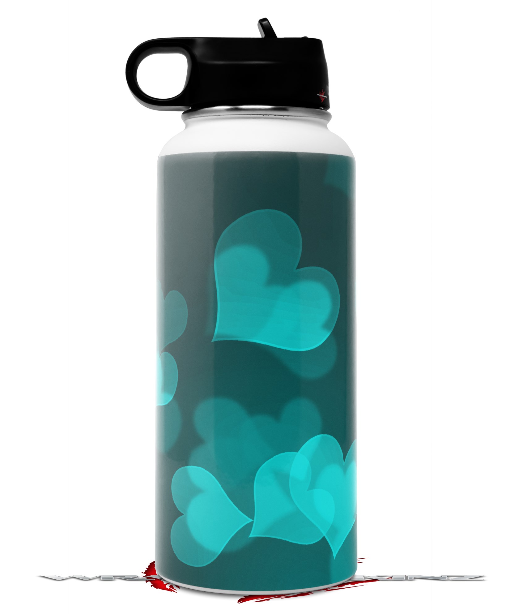 Skin Wrap Decal compatible with Hydro Flask Wide Mouth Bottle 32oz Bokeh Hearts Neon Teal (BOTTLE NOT INCLUDED)