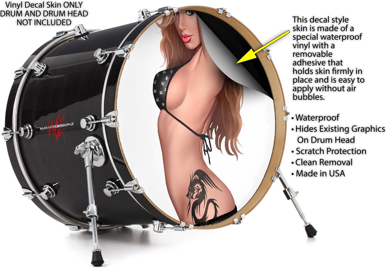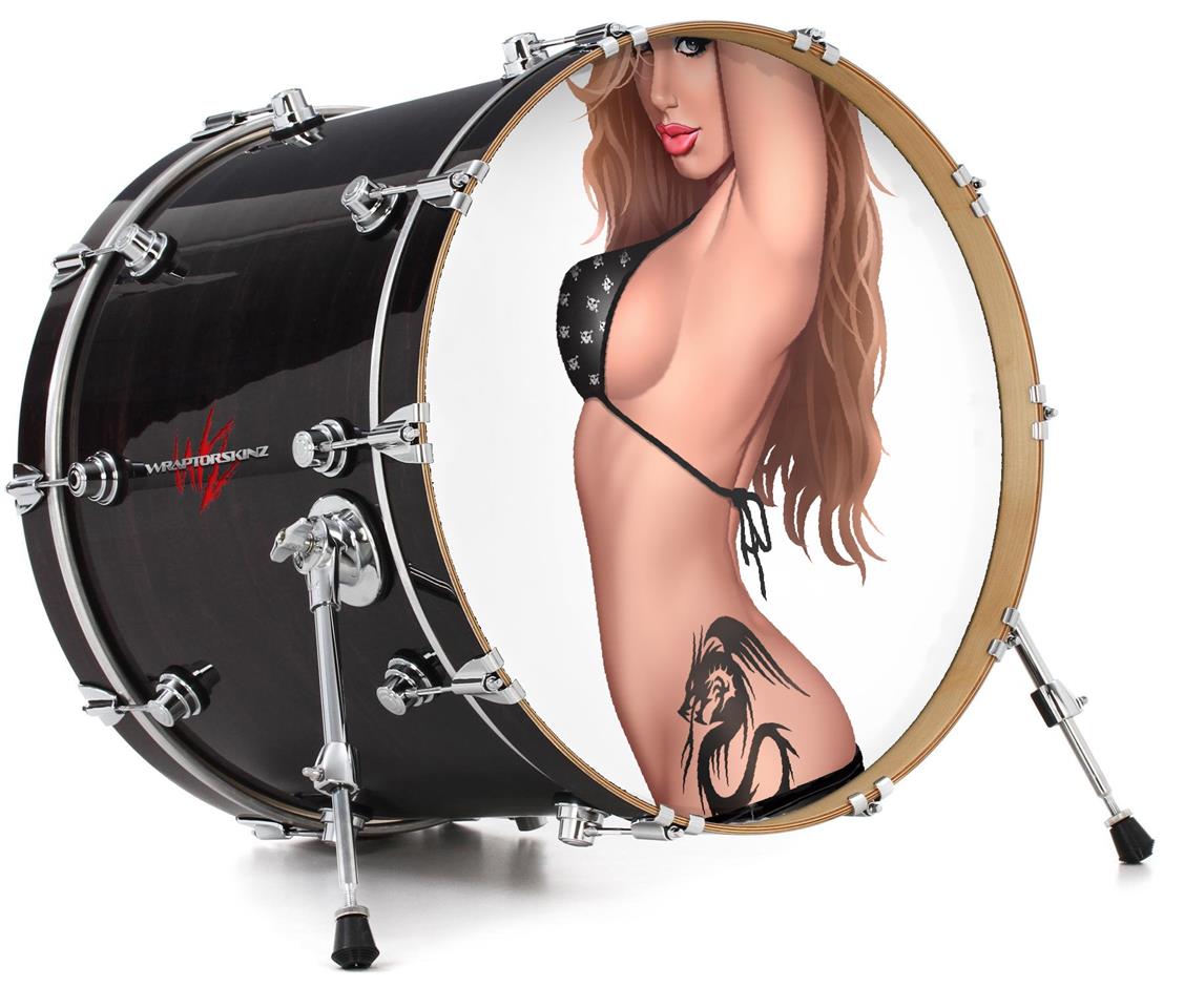 This design also available in other sizes. WraptorSkinz® skin wraps compatible with most kick drum heads. Printed using superb photo quality designs and vibrant colors printed with special fade resistant inks that last even in direct sun for years. WraptorSkinz are a composite three layer commercial grade materials vinyl. The bottom layer is a air release, grey block out removable adhesive that hides existing graphics on the drum head and is easily applied without air bubbles. The middle layer is a flexible vinyl printed with UV protected, fade resistant inks that deliver superb photo quality designs in vibrant colors. Finally, we bond a professional grade laminate over the entire skin adding a glossy protective finish.