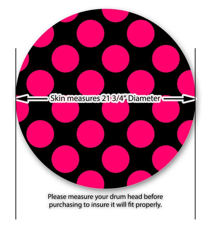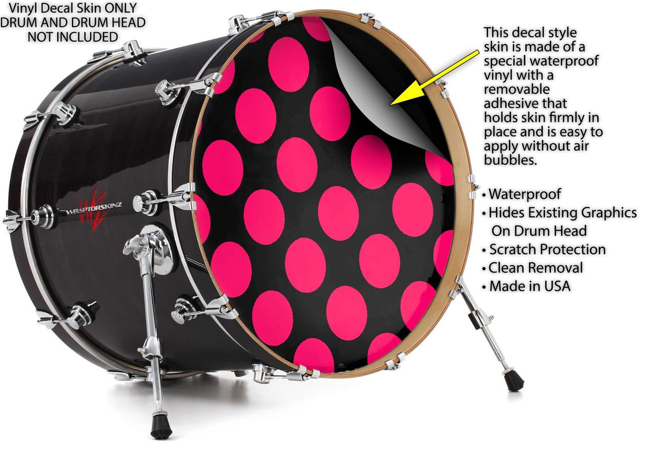 Vinyl Decal Skin Wrap for 22" Bass Kick Drum Head Kearas Polka Dots Pink On Black - DRUM HEAD NOT INCLUDED