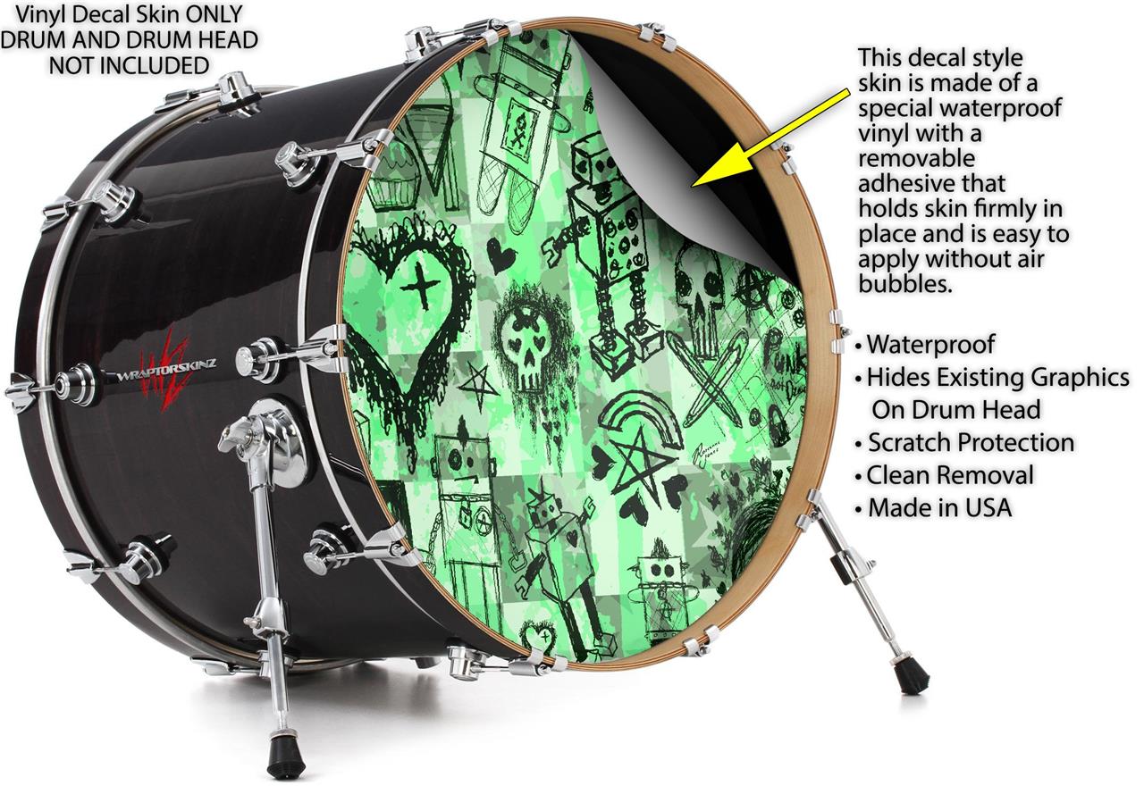 Vinyl Decal Skin Wrap for 22" Bass Kick Drum Head Scene Kid Sketches Green - DRUM HEAD NOT INCLUDED