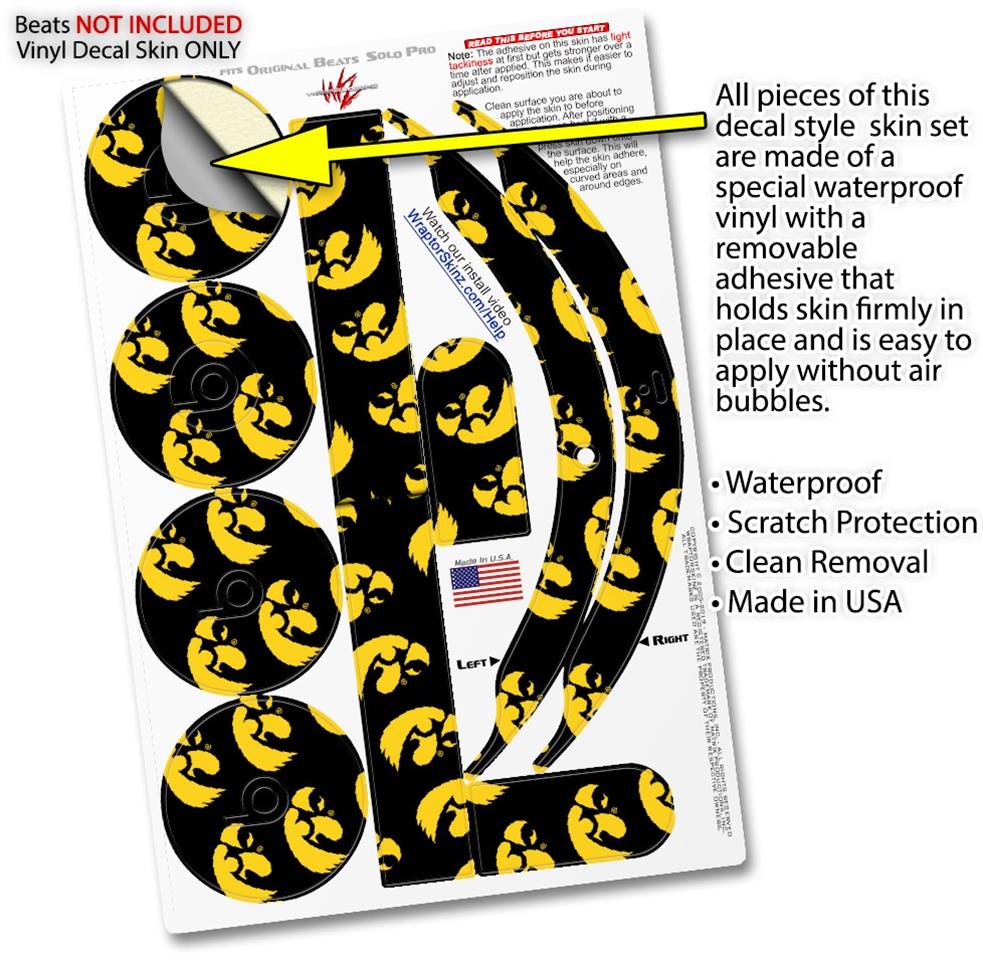 WraptorSkinz Skin Skin Decal Wrap works with Beats Solo Pro (Original) Headphones Iowa Hawkeyes Tigerhawk Tiled 06 Gold on Black Skin Only BEATS NOT INCLUDED