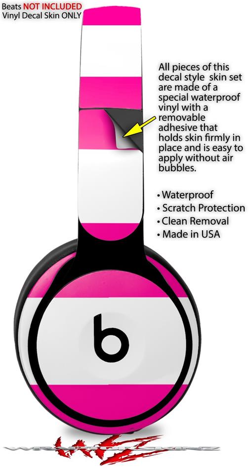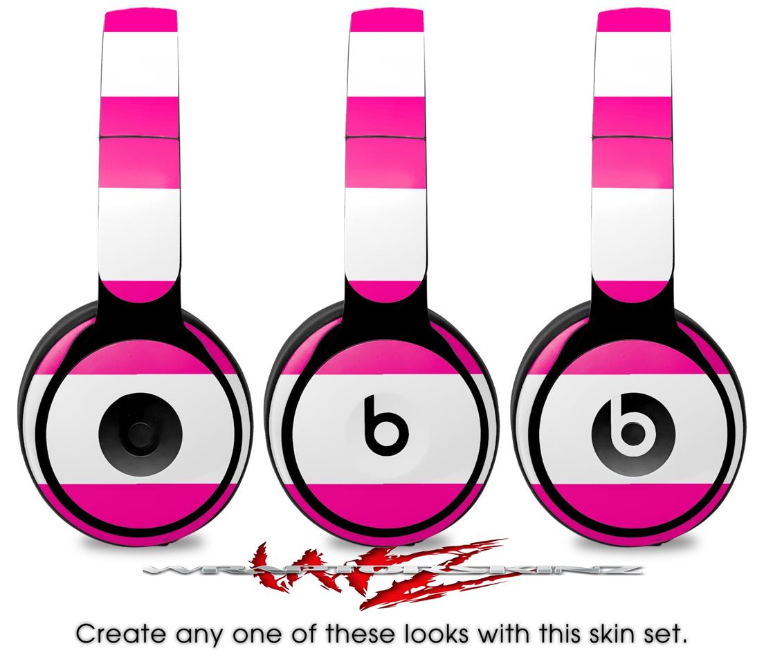 WraptorSkinz Skin Skin Decal Wrap works with Beats Solo Pro (Original) Headphones Psycho Stripes Hot Pink and White Skin Only BEATS NOT INCLUDED