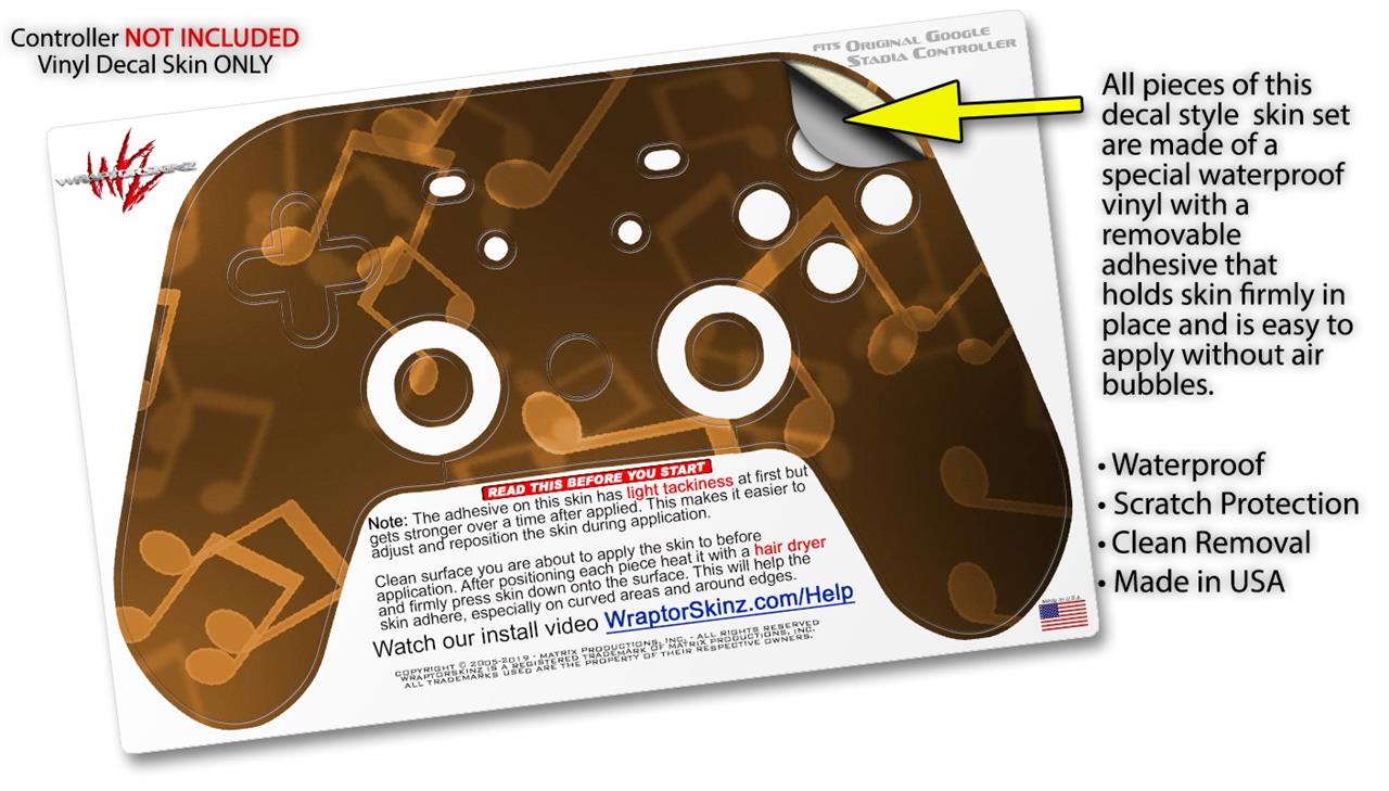 This product is in no way affiliated with or endorsed by Google. WraptorSkinz® skin wraps work with the Original Google Stadia version 1 Controller. Printed using superb photo quality designs and vibrant colors printed with special fade resistant inks that last even in direct sun for years. WraptorSkinz are a composite of two layers of commercial grade materials. The bottom layer is a soft, flexible vinyl with a special removable adhesive that is easily positioned, applied without air bubbles. Next, we print the bottom layer with UV protected, fade resistant inks that deliver superb photo quality designs in vibrant colors. Finally, we bond a professional grade laminate over the entire skin adding a glossy protective finish.
