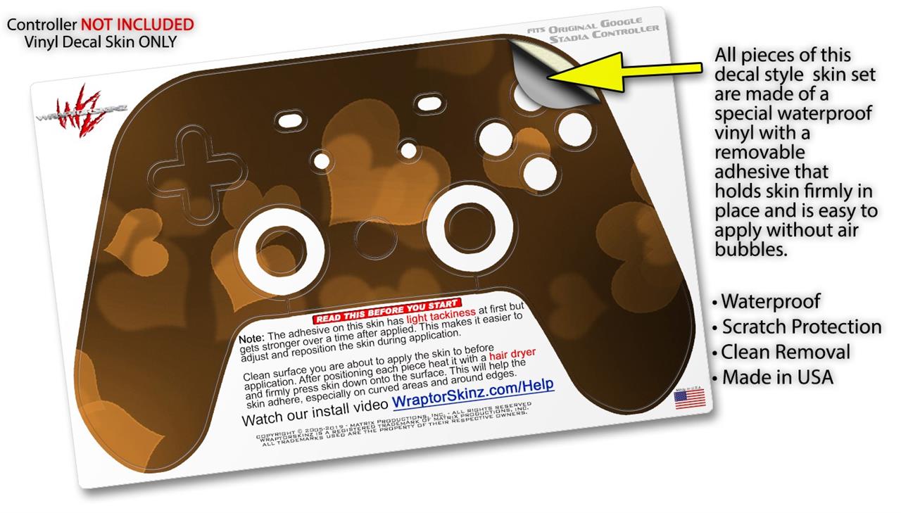 Skin Decal Wrap works with Original Google Stadia Controller Bokeh Hearts Orange Skin Only CONTROLLER NOT INCLUDED