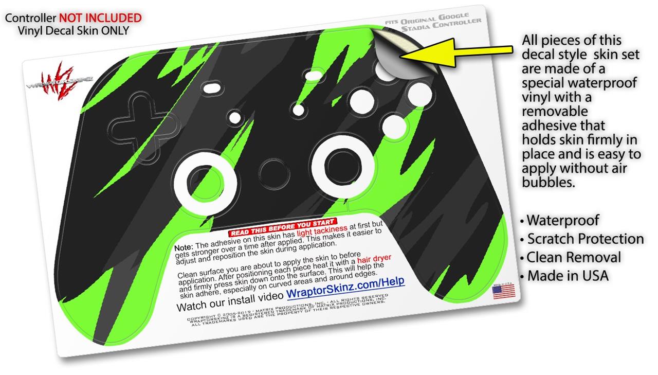 Skin Decal Wrap works with Original Google Stadia Controller Jagged Camo Neon Green Skin Only CONTROLLER NOT INCLUDED