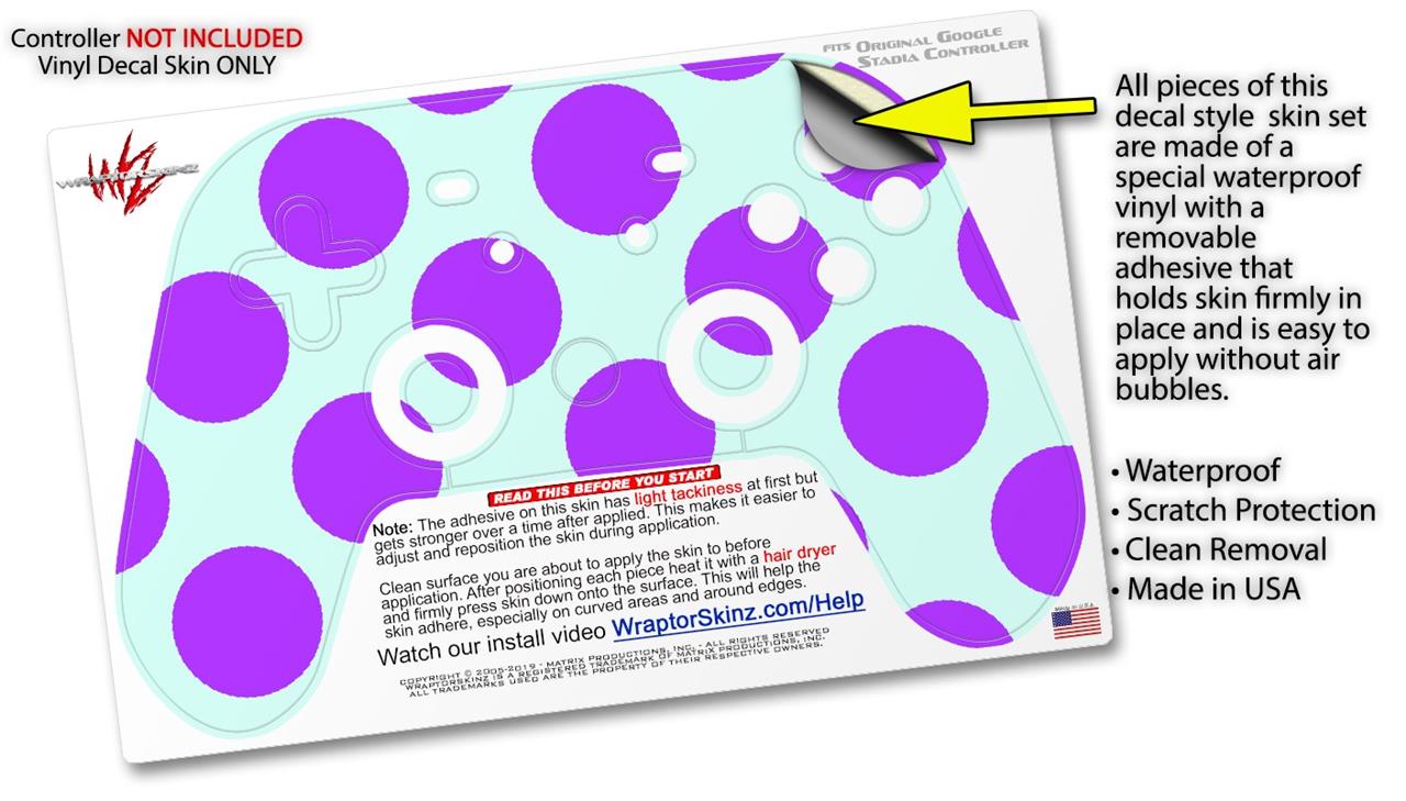Skin Decal Wrap works with Original Google Stadia Controller Kearas Polka Dots Purple And Blue Skin Only CONTROLLER NOT INCLUDED