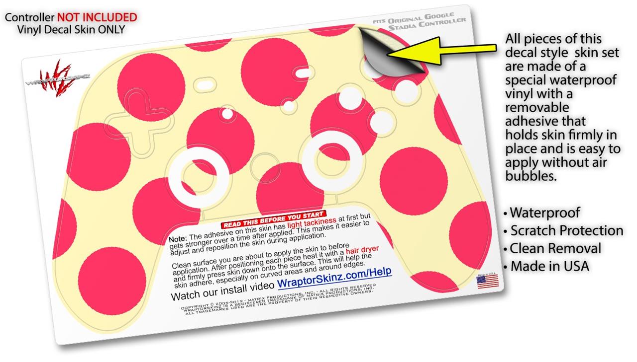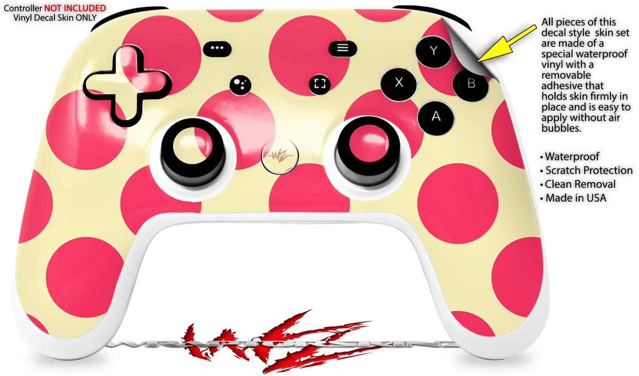 Skin Decal Wrap works with Original Google Stadia Controller Kearas Polka Dots Pink On Cream Skin Only CONTROLLER NOT INCLUDED