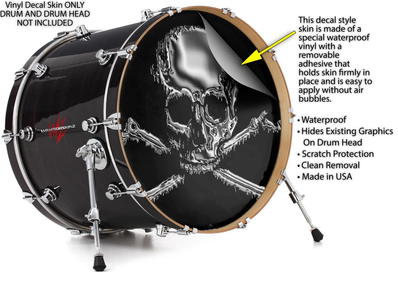 Vinyl Decal Skin Wrap for 20" Bass Kick Drum Head Chrome Skull on Black - DRUM HEAD NOT INCLUDED