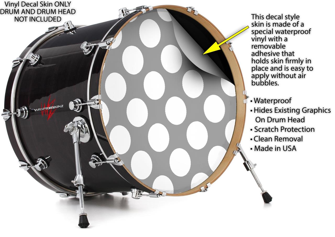 Vinyl Decal Skin Wrap for 20" Bass Kick Drum Head Kearas Polka Dots Whtie On Gray - DRUM HEAD NOT INCLUDED