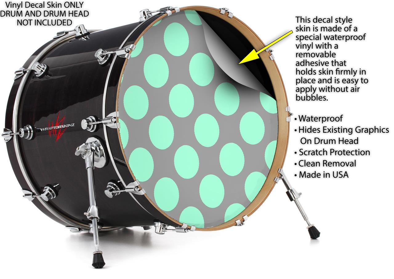 Vinyl Decal Skin Wrap for 20" Bass Kick Drum Head Kearas Polka Dots Mint And Gray - DRUM HEAD NOT INCLUDED