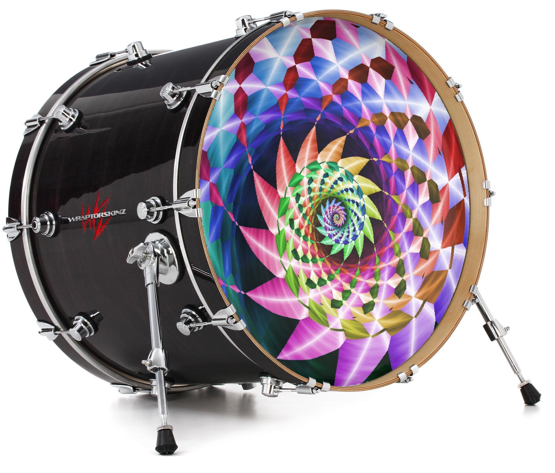 This design also available in other sizes. WraptorSkinz® skin wraps compatible with most kick drum heads. Printed using superb photo quality designs and vibrant colors printed with special fade resistant inks that last even in direct sun for years. WraptorSkinz are a composite three layer commercial grade materials vinyl. The bottom layer is a air release, grey block out removable adhesive that hides existing graphics on the drum head and is easily applied without air bubbles. The middle layer is a flexible vinyl printed with UV protected, fade resistant inks that deliver superb photo quality designs in vibrant colors. Finally, we bond a professional grade laminate over the entire skin adding a glossy protective finish.