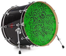 Decal Skin works with most 24" Bass Kick Drum Heads Folder Doodles Green - DRUM HEAD NOT INCLUDED