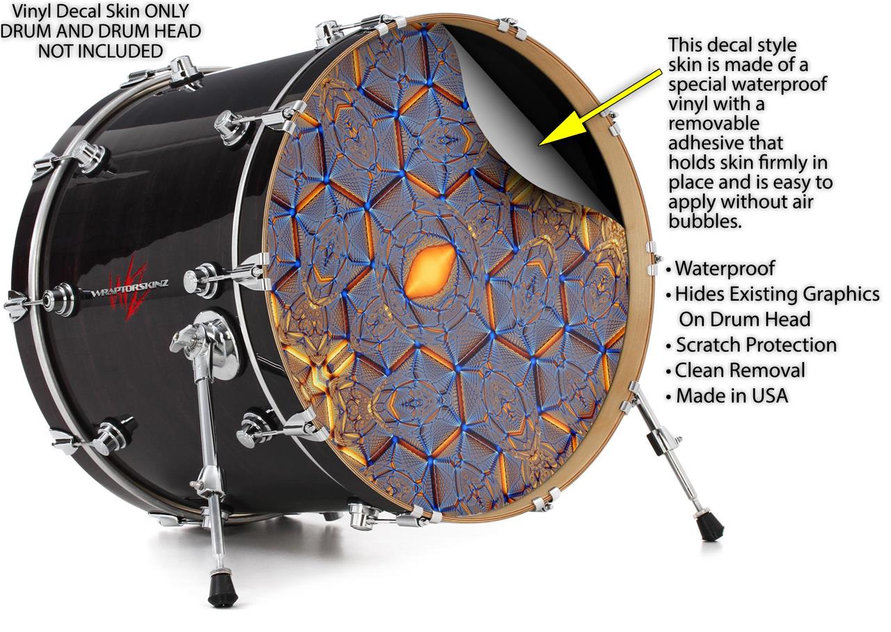 This design also available in other sizes. WraptorSkinz® skin wraps compatible with most kick drum heads. Printed using superb photo quality designs and vibrant colors printed with special fade resistant inks that last even in direct sun for years. WraptorSkinz are a composite three layer commercial grade materials vinyl. The bottom layer is a air release, grey block out removable adhesive that hides existing graphics on the drum head and is easily applied without air bubbles. The middle layer is a flexible vinyl printed with UV protected, fade resistant inks that deliver superb photo quality designs in vibrant colors. Finally, we bond a professional grade laminate over the entire skin adding a glossy protective finish.