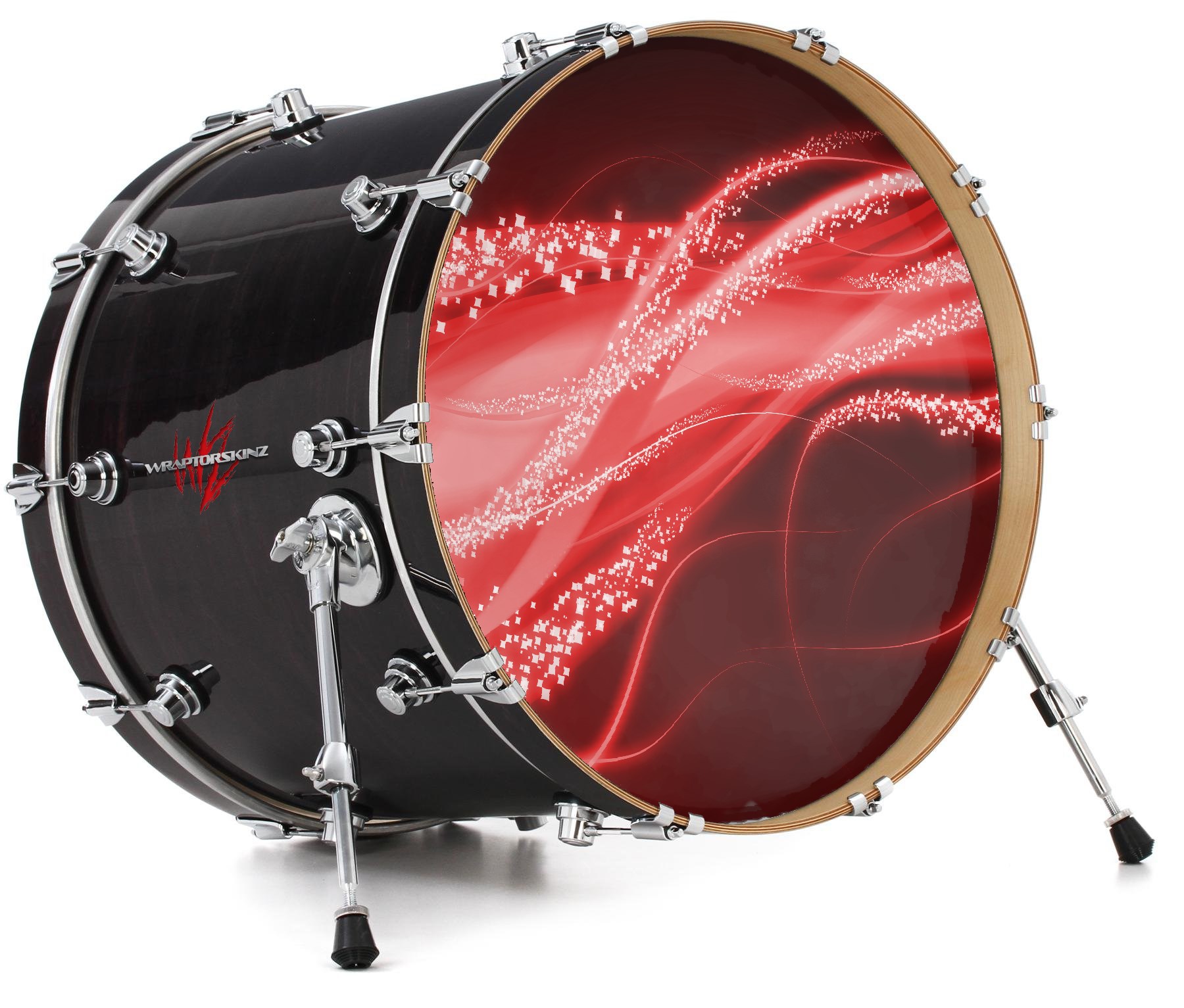 This design also available in other sizes. WraptorSkinz® skin wraps compatible with most kick drum heads. Printed using superb photo quality designs and vibrant colors printed with special fade resistant inks that last even in direct sun for years. WraptorSkinz are a composite three layer commercial grade materials vinyl. The bottom layer is a air release, grey block out removable adhesive that hides existing graphics on the drum head and is easily applied without air bubbles. The middle layer is a flexible vinyl printed with UV protected, fade resistant inks that deliver superb photo quality designs in vibrant colors. Finally, we bond a professional grade laminate over the entire skin adding a glossy protective finish.